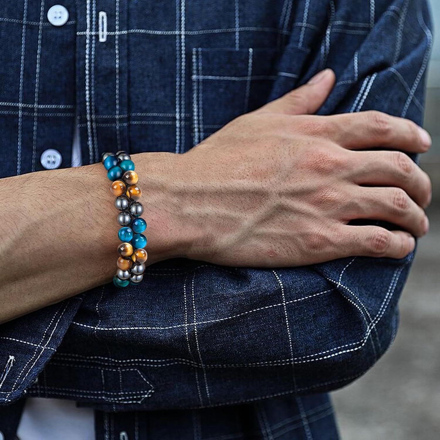 8 reviews for Tiger Eye Bracelet, MIDON Triple Protection Bracelet for Men Women, Handmade Tiger Eye Beads Hematite and Black Obsidian Jewelry Natural Stone Healing Energy Crystal Bracelets
