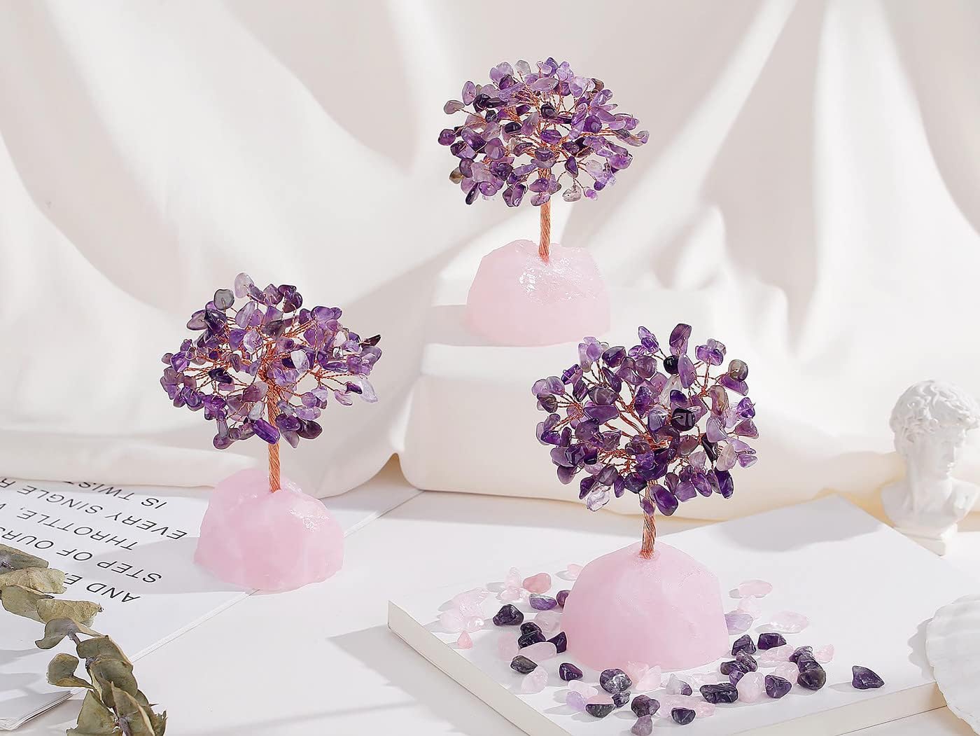 QINJIEJIE Crystal Tree Healing Crystals Amethyst Tree Purple Gravel Gemstone Tree Rose Quartz Pink Base Copper Wire Life Tree Stones Artificial Energy Desk Decor Spiritual Meditation Gifts