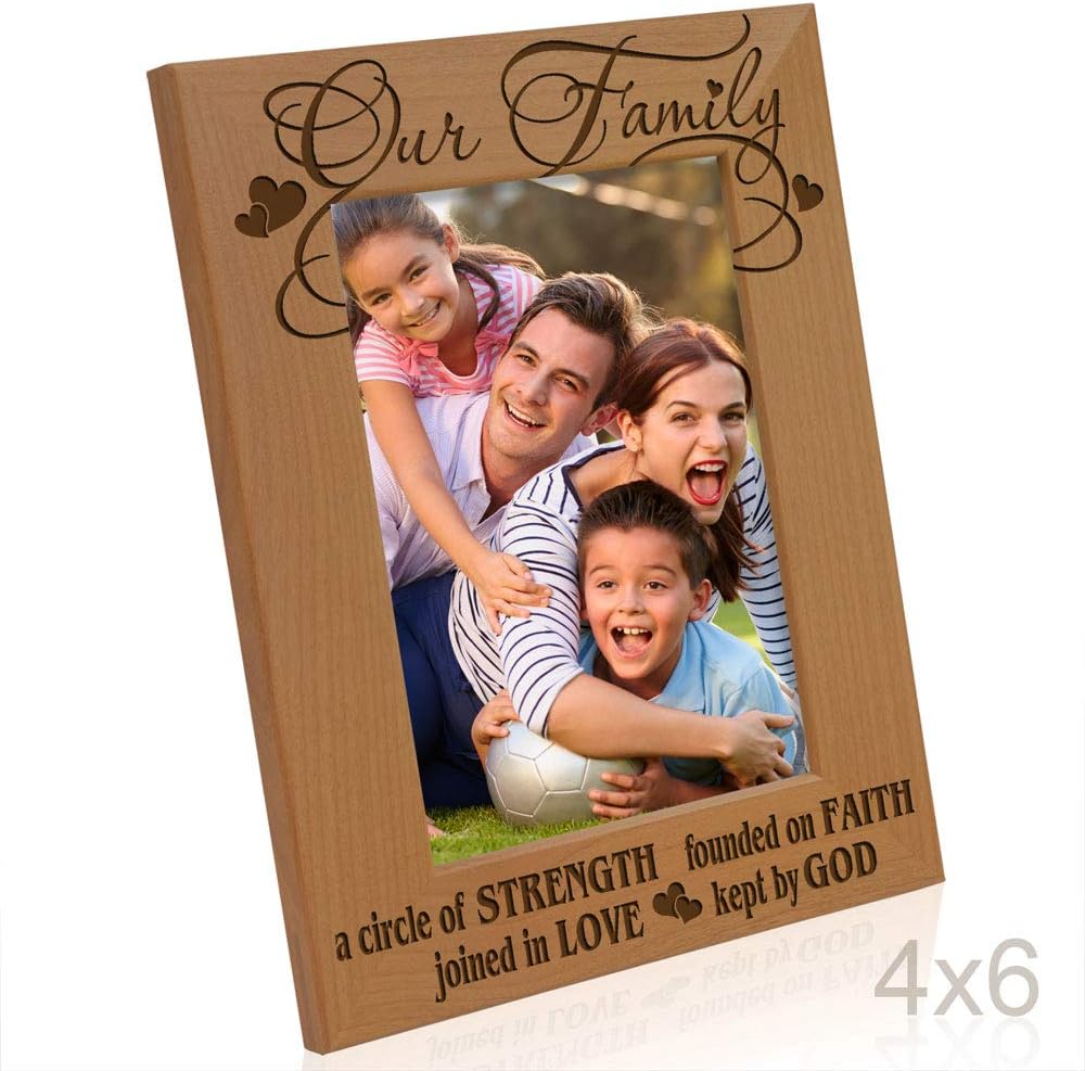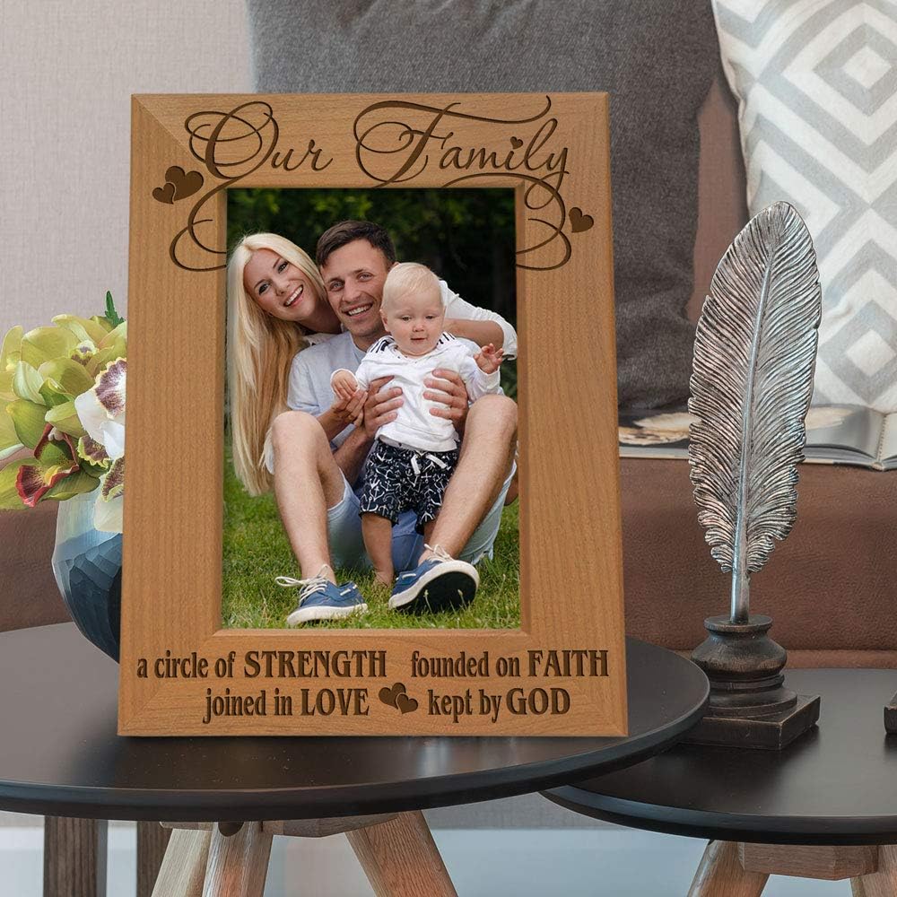 8 reviews for Our Family – A circle of Strength, founded on Faith, joined in Love, kept by God Engraved Natural Wood Picture Frame, Family Gifts, Housewarming, Religious & Spiritual, Wedding gifts (4×6-Vertical)
