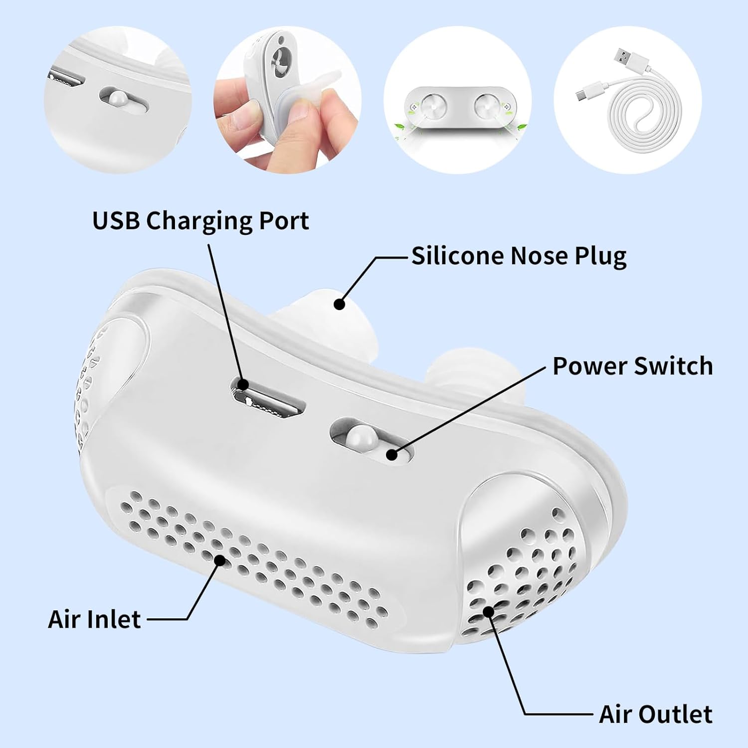 Anti Snoring Devices, Effective Snoring Prevention, Twin Turbine Electric Adjustable and Breathable, Adjustable Wind Speed, Snoring Solution for Men and Women, Suitable for All Nose Shapes White 2