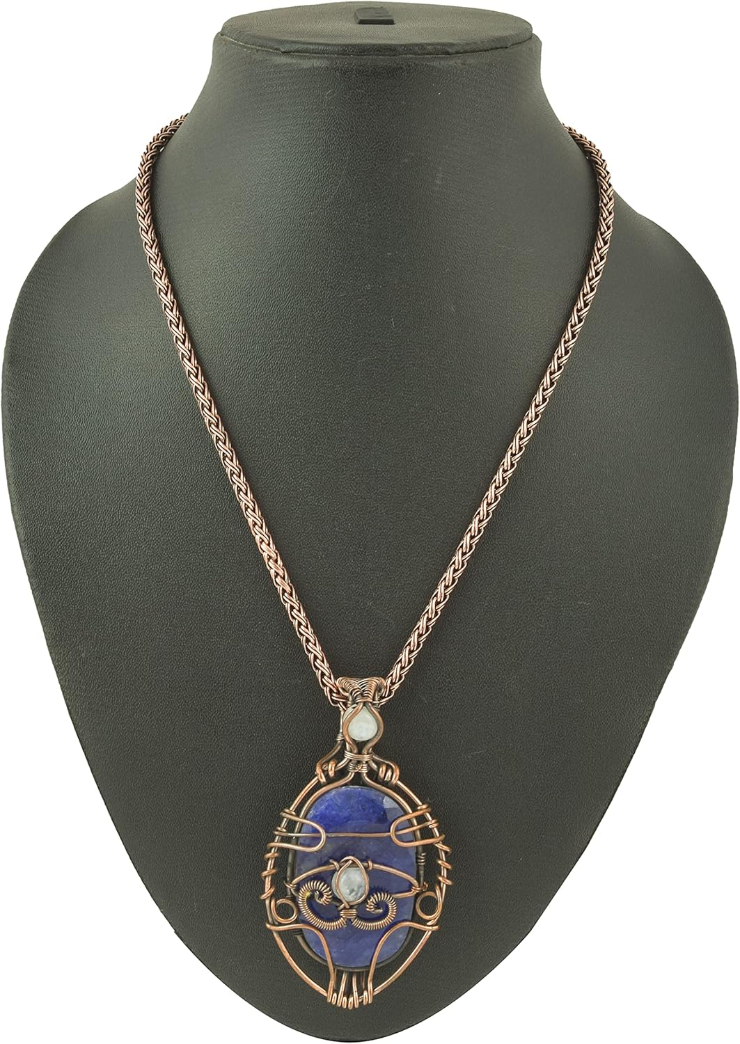 Be the first to review “Evil Eye Blue Sapphire & Moonstone Gemstone Pendant Copper Wire Wrapped Jewelry Necklace 18″”
