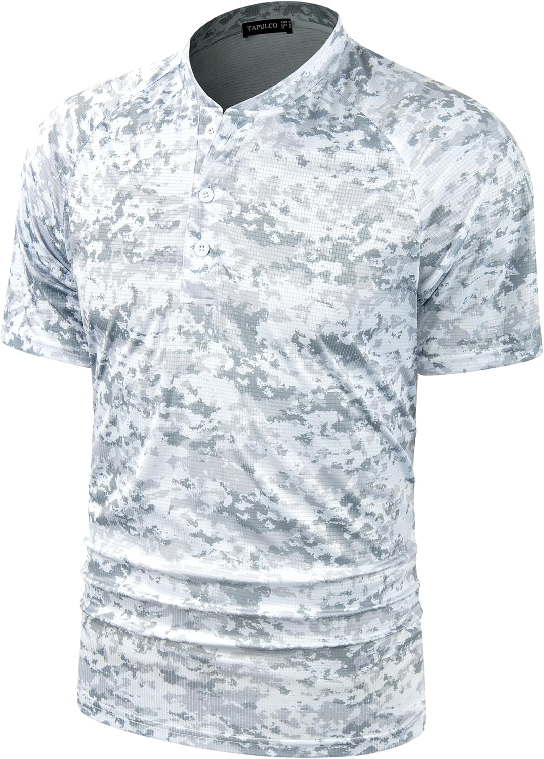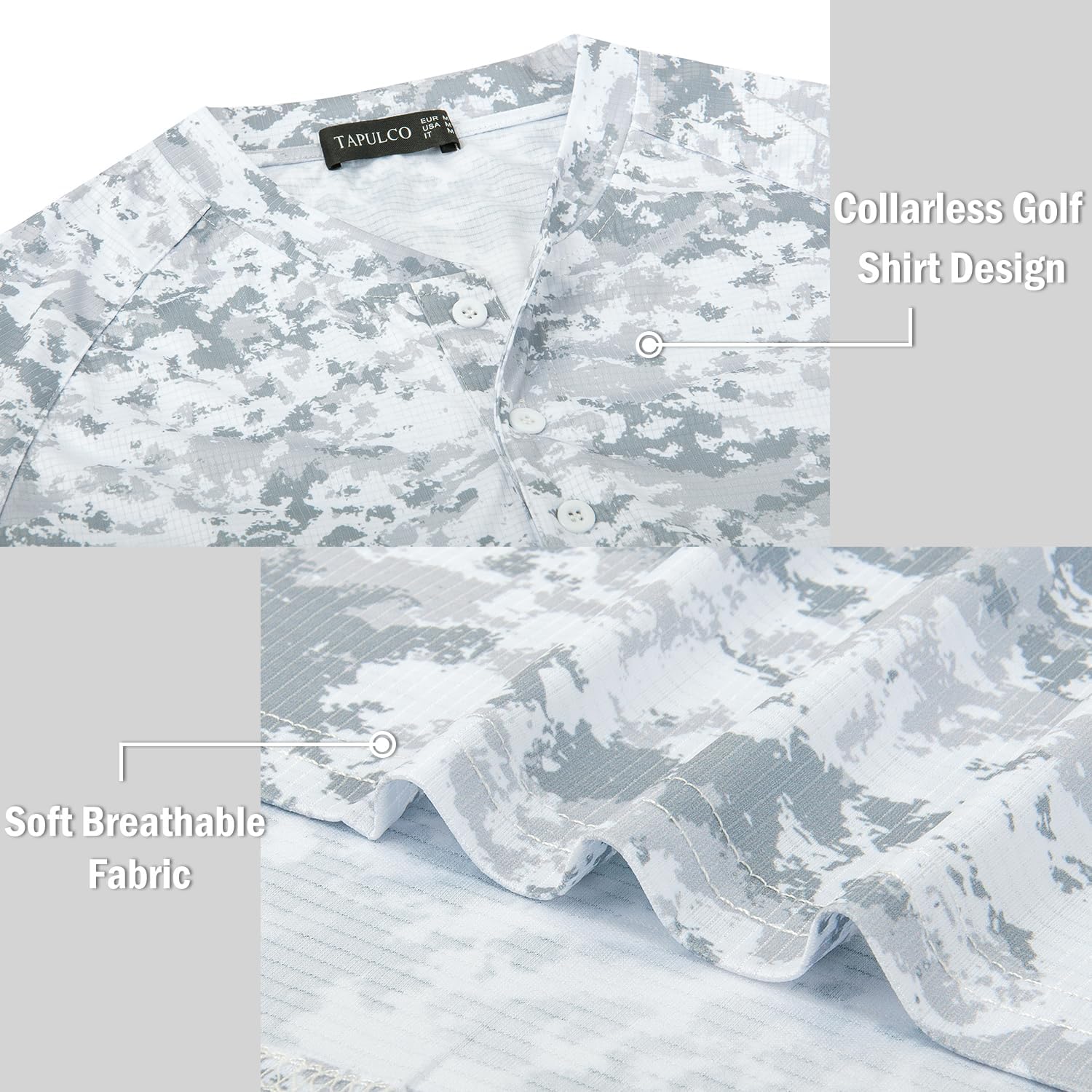 TAPULCO Mens Collarless Golf Shirts Short Sleeve Dry Fit Stretch Casual Breathable Lightweight Tshirts
