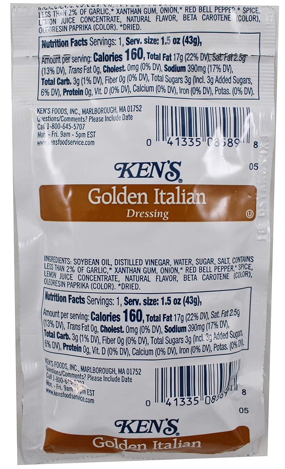 Ken’s Steakhouse Golden Italian Dressing 1.5 oz Packets (Pack of 20)