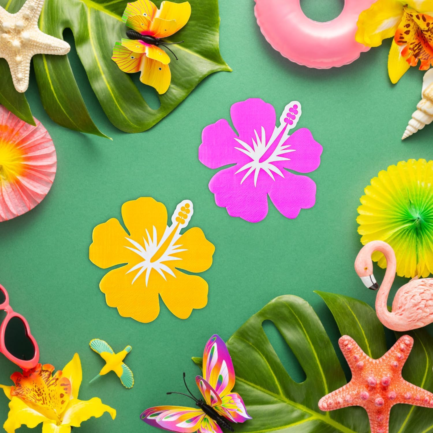 100 Pack Hawaii Laua Paper Napkins Tropical Luncheon Disposable Napkins Hawaii Hibiscus Beverage Napkins for Beach Summer Hawaiian Luau Party Supplies Tableware Decorations