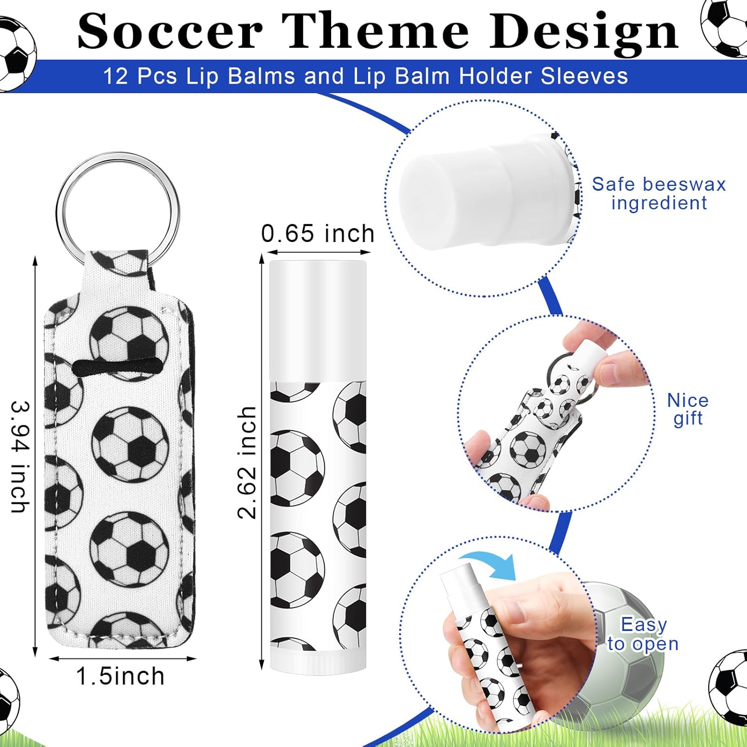 Complete Soccer Themed Package: with each soccer sports team gifts set, you get polyester soccer cosmetic bags, soccer keychains, lip balms, lip balm sleeves, and soccer charm bracelets, all adding up to a total of 12 sets in the package; This plentiful selection of soccer related items is crafted to suit the needs of soccer devotee, adding a touch of personalization to each gift