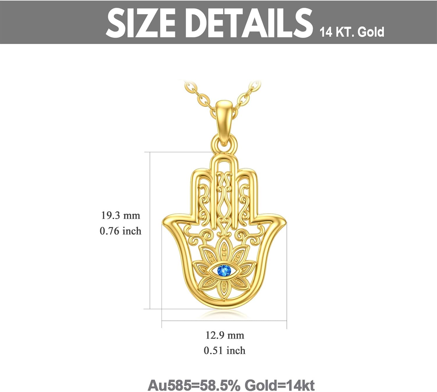 14K Solid Gold Hamsa Necklace for Women,14k Gold Evil Eye Necklace Fatima Hamsa Hand Charm Pendant Necklace Birthday Christmas Gifts for Mom Wife Her,16”+2”