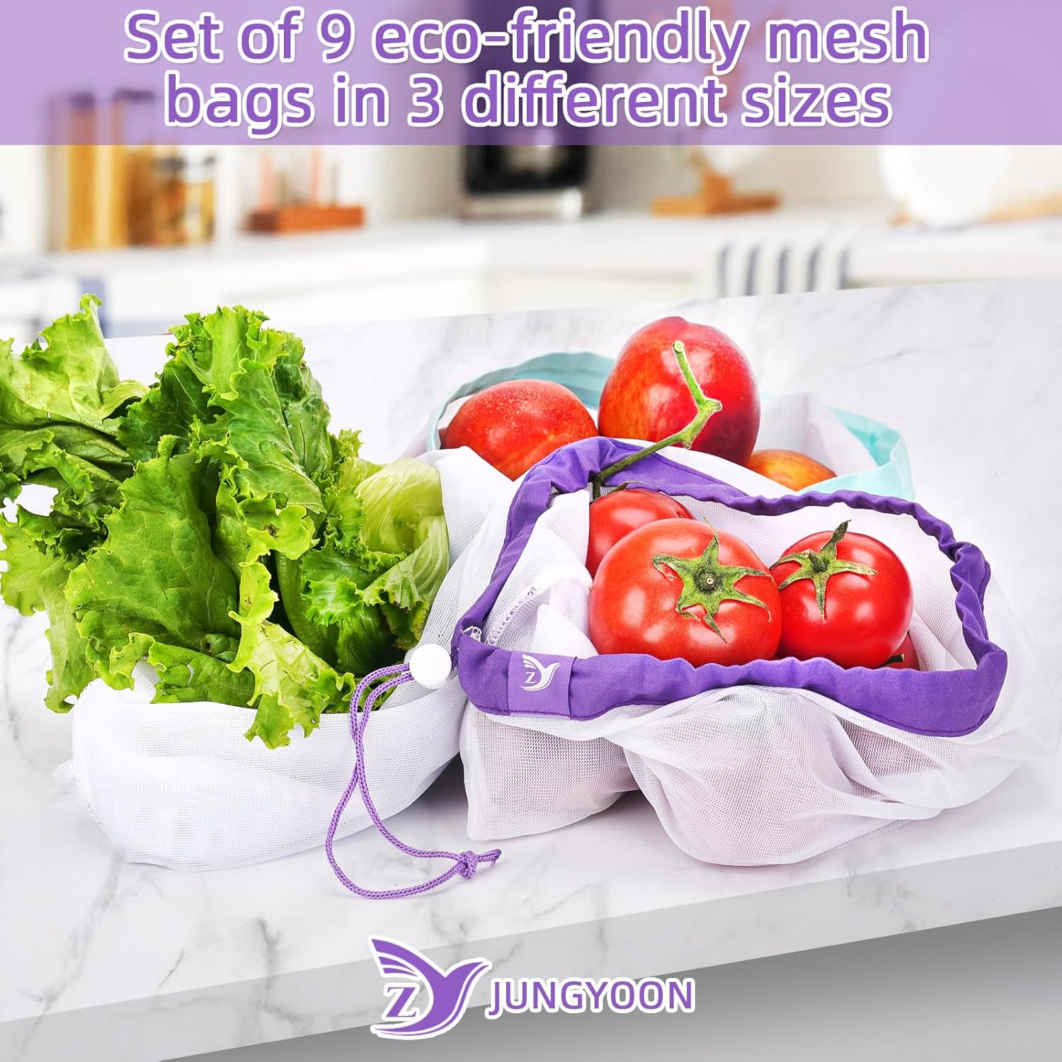 8 reviews for 15 Pcs Produce Bags Eco-Friendly Heavy Duty Reusable Mesh Produce Bags Vegetable Bags Grocery Bag with Drawstring, Ideal for Farmers Market, Beach and Refrigerator Storage