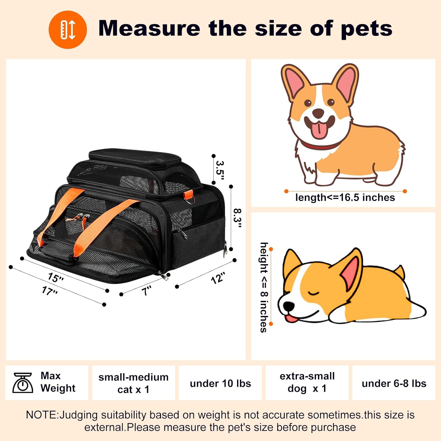 17x12x8.3 TSA Approved Expandable pet Carrier for Extra-Small Dog Under 6-8 lbs,Small-Medium cat Under 10 lbs,for jetblue and Other Airlines only Have 8.5” Height Space underseat