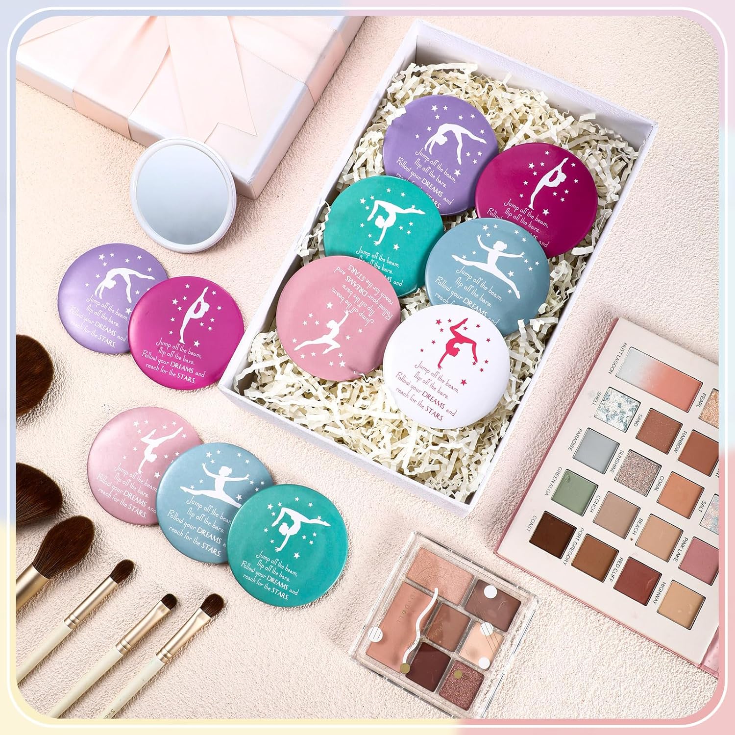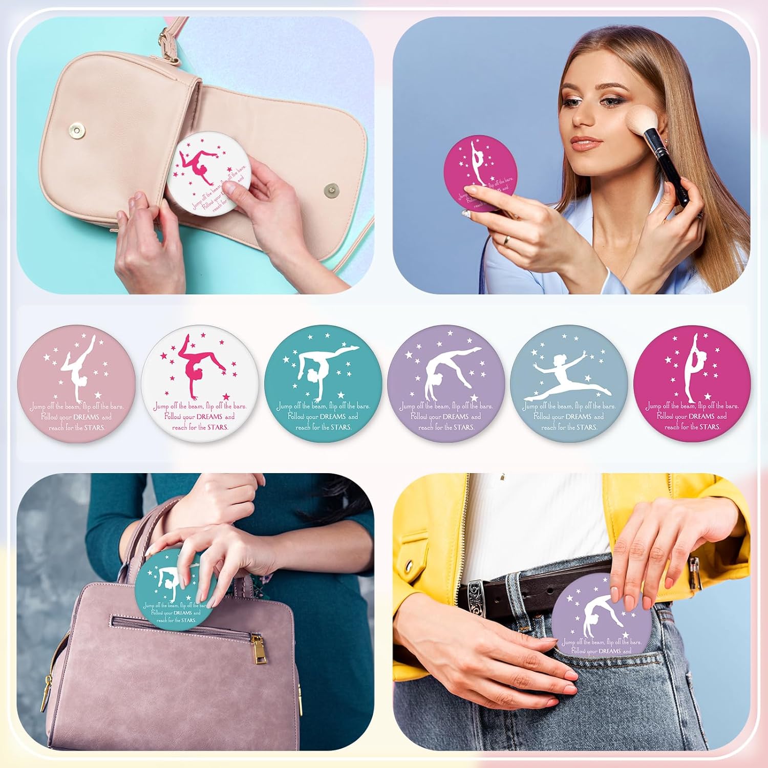 1 review for 18 Pcs Mini Compact Mirror Gifts for Women 2.76 Inches Pocket Purse Mirror Inspirational Gifts for Sports Lovers Team Accessories Supplies