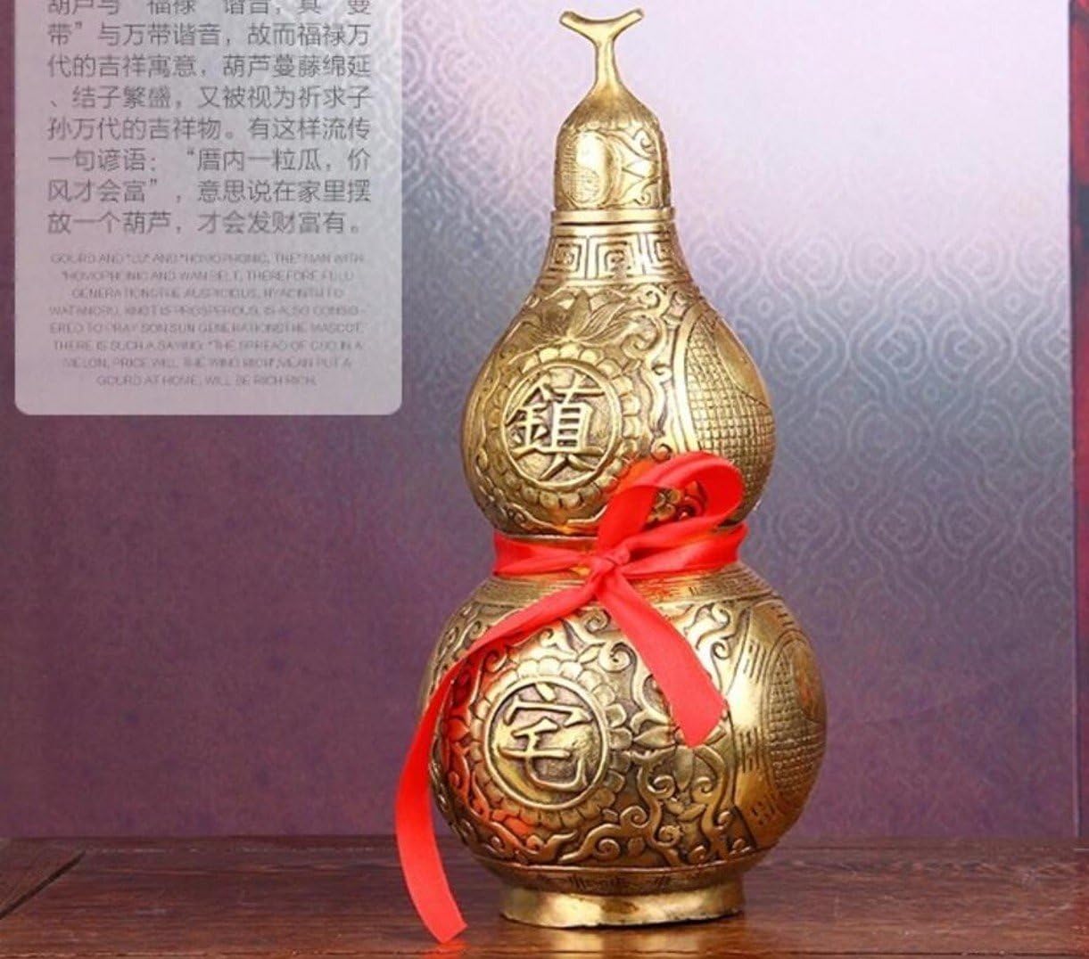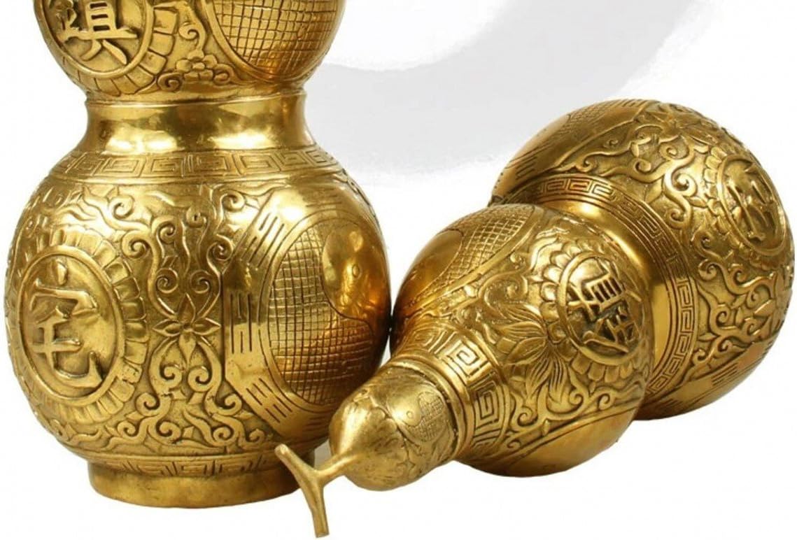 SIZE — height 20cm/7.9”. PRODUCT MATERIAL — Copper with golden color. HU LU — Home auspicious ornaments,The mouth of the wu lou is small and bottom is big. So it is considered to hold treasure. It can also can drive away doom, and bring you good luck. PRODUCT DESIGN — The shape is very unique, excellent workmanship. PRODUCT USAGE —It can absorb people’s bad luck, enhance the fortune.In ancient China, copper was used to suppress monsters, was taken away from evil and disease. So this is a symbol of good health. Refresh the decor appeal of short spaces on tables and shelves.