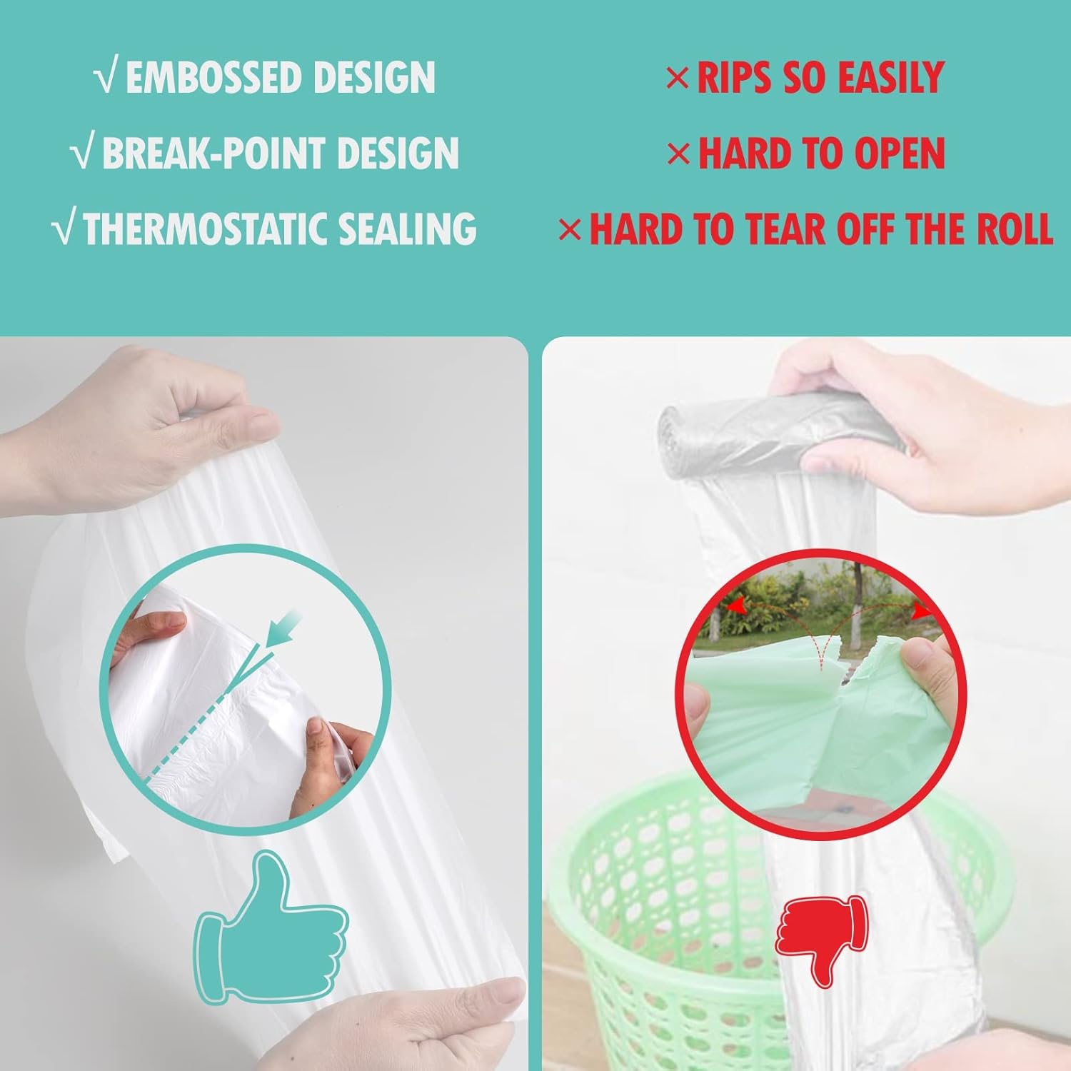★【Excellent BREAKPOINT DESIN & Octagonal Bottom】Our small garbage bags for bathroom can seam have an optimal perforation design, which is easy to tear off & separate! After the 10 liter mini garbage bags seam is torn, the interface is neat and flat, the small trash can liners will be no holes or cracks! The small trash bags bathroom bottom octagonal is integrally formed without leakage space!