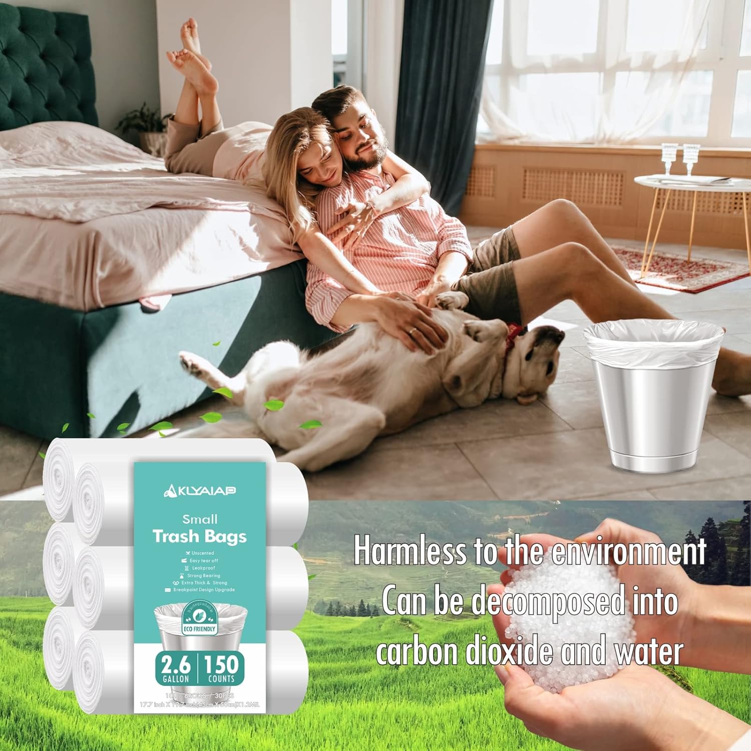 2.6 Gallon Small Trash Bags Biodegradable, Aklyaiap 150 Counts Unscented Small Garbage Bags,10 Liter Mini Trash Bags,Small Waste Basket Liners For Kitchen,Home,Office& Bathroom