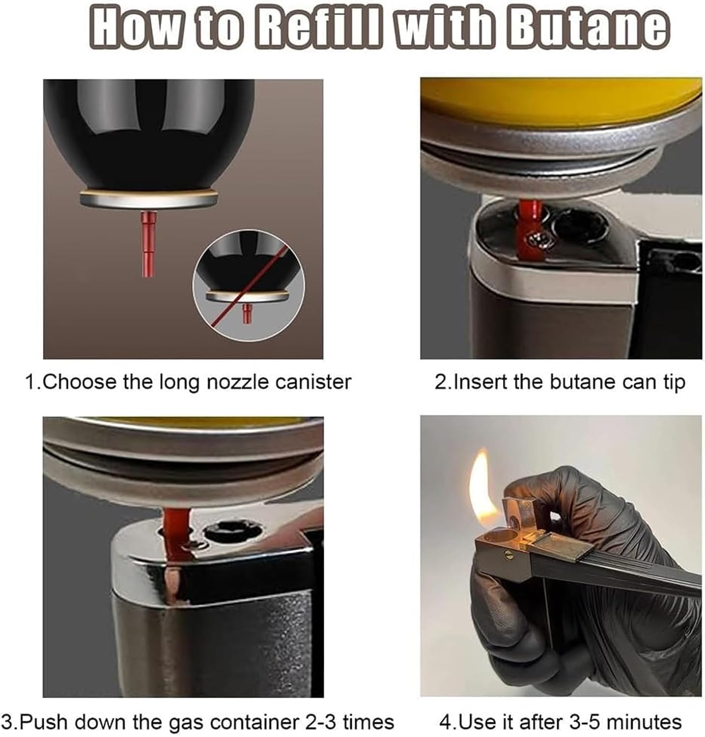 Refillable: This lighter is refillable which is more environmentally friendly. The set include the tools you need to use,providing convenience and ease.Close the cover and fold it up so it can be easily put into pockets and purses