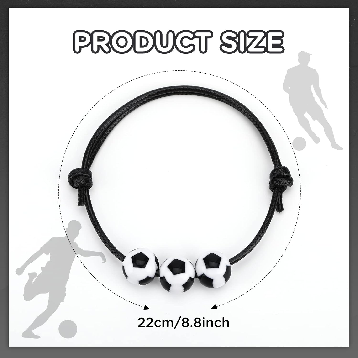 ADJUSTABLE: This soccer charm wristbands bracelets party decorations adopts a cute, simple and adjustable design, attached with eye-catching sport Soccer beads decorations which is very suitable for Adults and ball team.