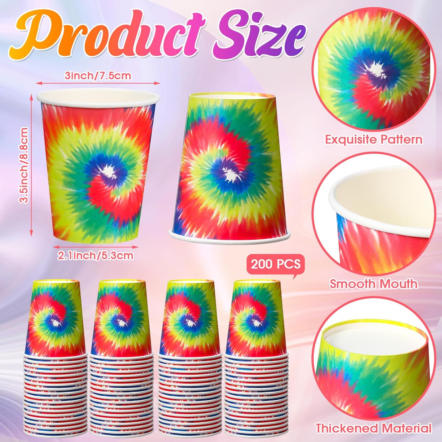 3 reviews for 200 Pack 9 oz Tie Dye Cups Tie Dye Birthday Party Decoration Tie Dye Paper Cups Hot Cold Beverage Paper Drinking Coffee Cups Disposable Drinkware Supplies for Tie Dye Birthday Party
