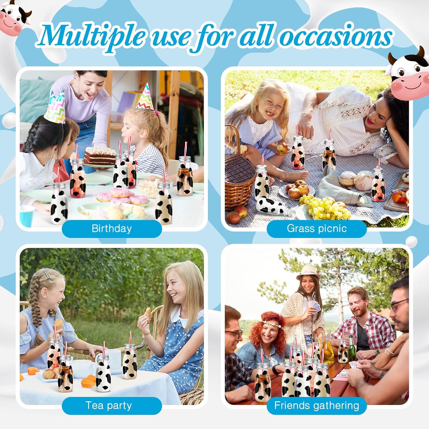 Bountiful Pack: this comprehensive bundle includes 24 small milk bottles with lids, 24 red and white striped straws, and 24 sheets of cow print stickers; That’s ample supply for your guests to enjoy; This makes it a practical choice for cow themed parties, birthdays, DIY projects, baby showers, and more