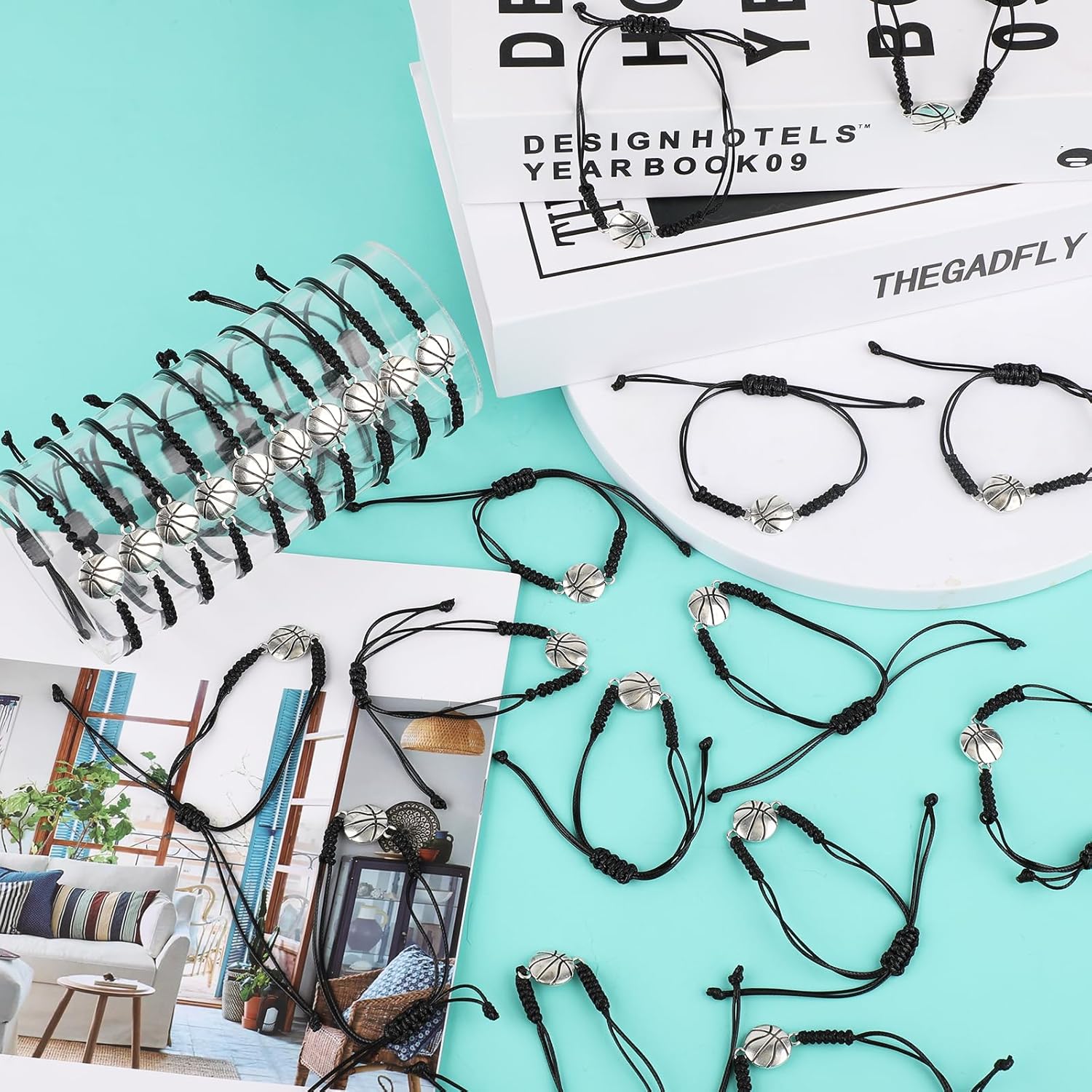 24pcs Basketball Bracelets, Adjustable Basketball Player Bracelet Hand Braided Rope Basketball Charm Bracelet Unisex Sport Jewelry Accessories for Women Men Team Coaches