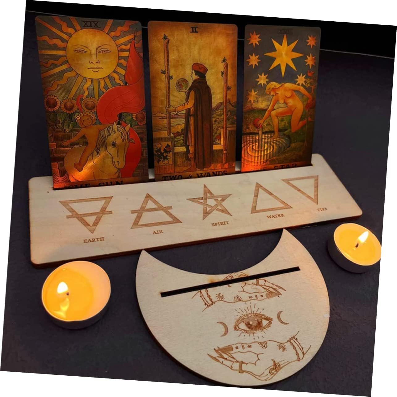 – You can use it to decorate your altar scene, small and easy to carry and store Tarot Card Wooden Holders.