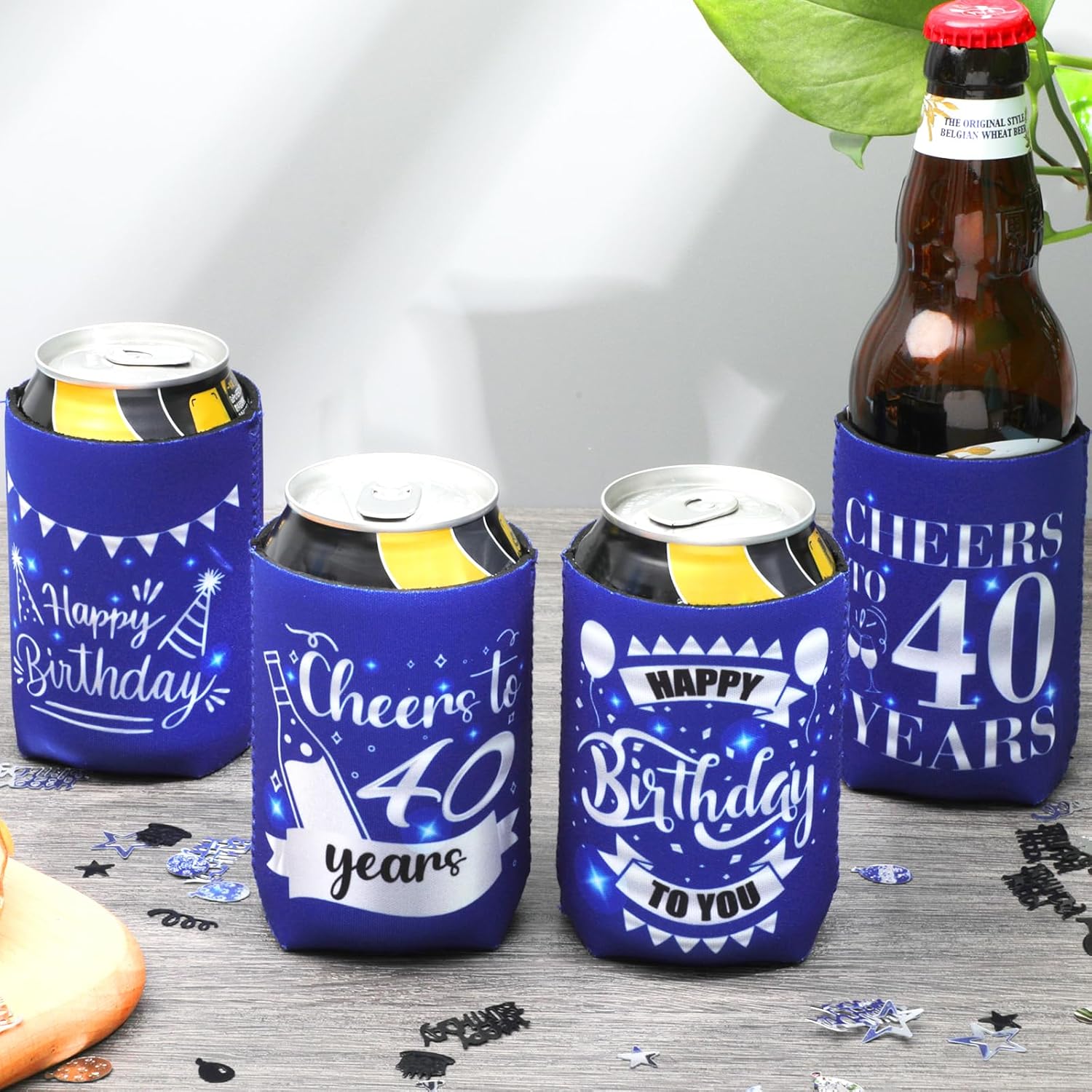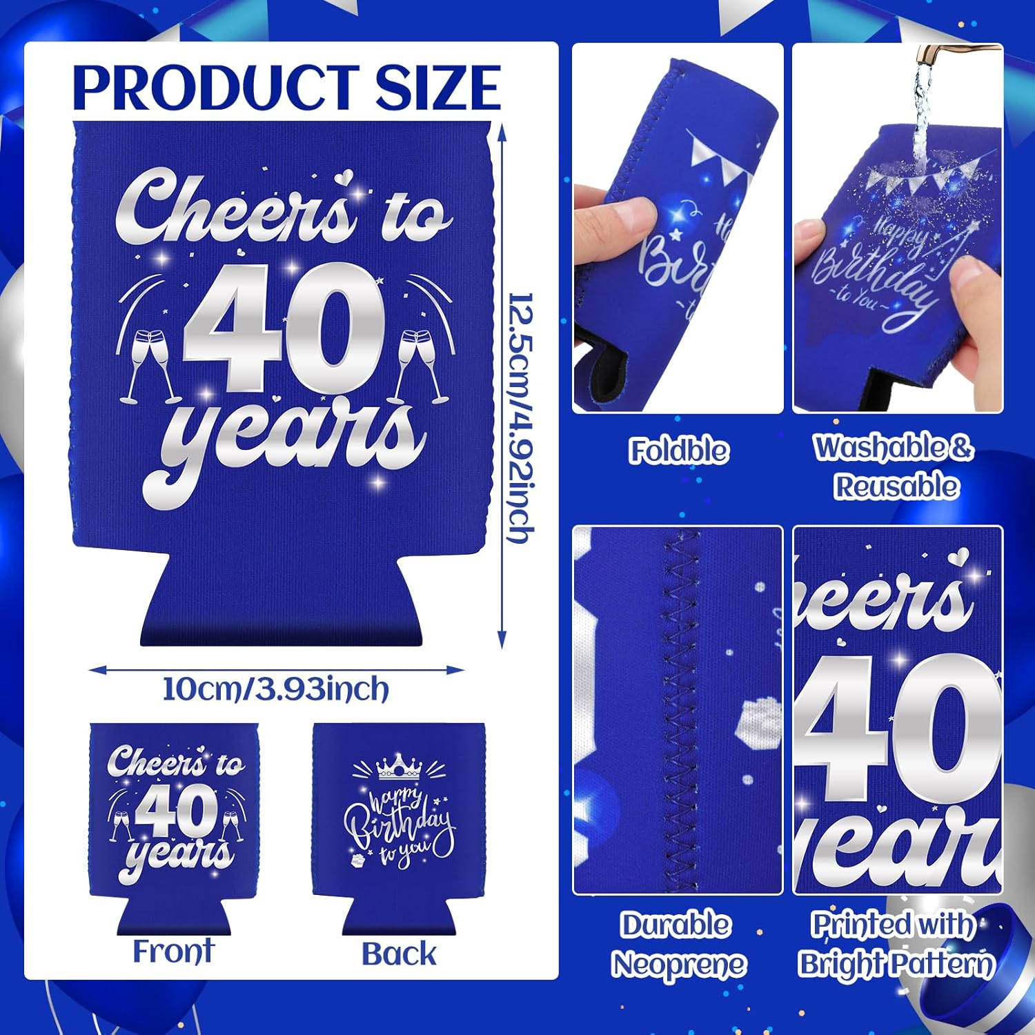 【Super Birthday Decorations】You will get 12pcs 40th Birthday Can Cooler Sleeve.Available in various patterns with blue silver, the can cooler sleeve adds a touch of personal style to your drink.It will keep your drinks cold and with its beautiful pattern will make a unique decoration for your birthday party!