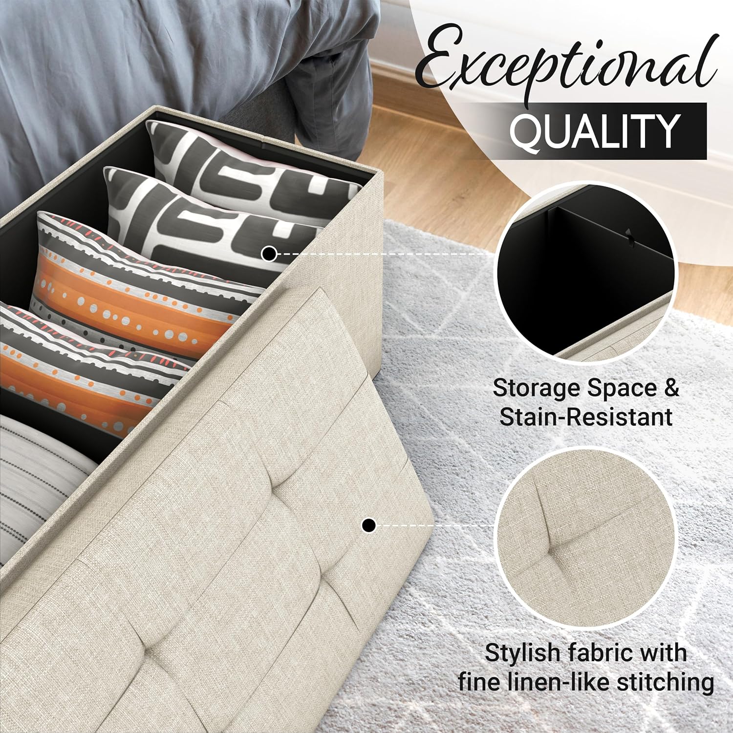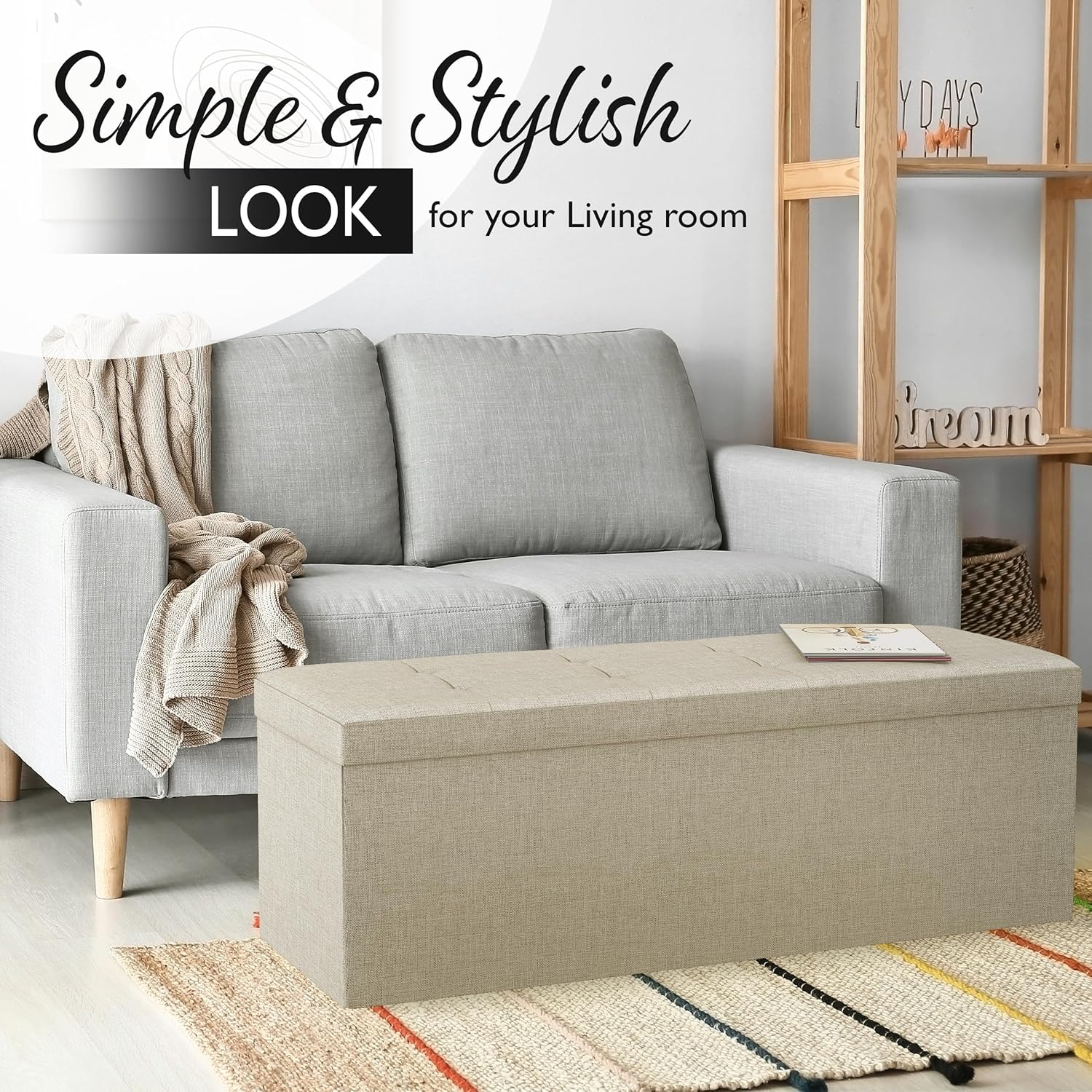 43″ Folding Storage Ottoman Bench for Living Room, Bedroom, TV Entertainment – Bedroom Bench with Hidden Storage, Foot Rest Stool – 660 Capacity & Holds up to 5.6 Cubic Feet of Storage