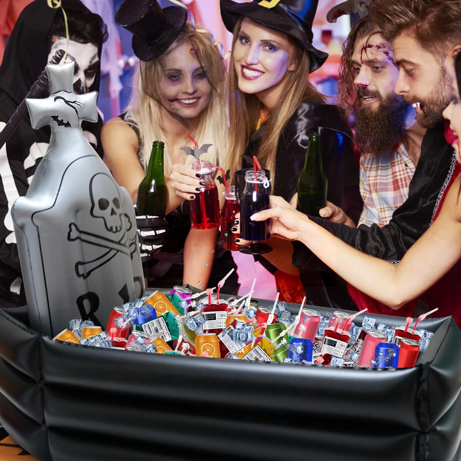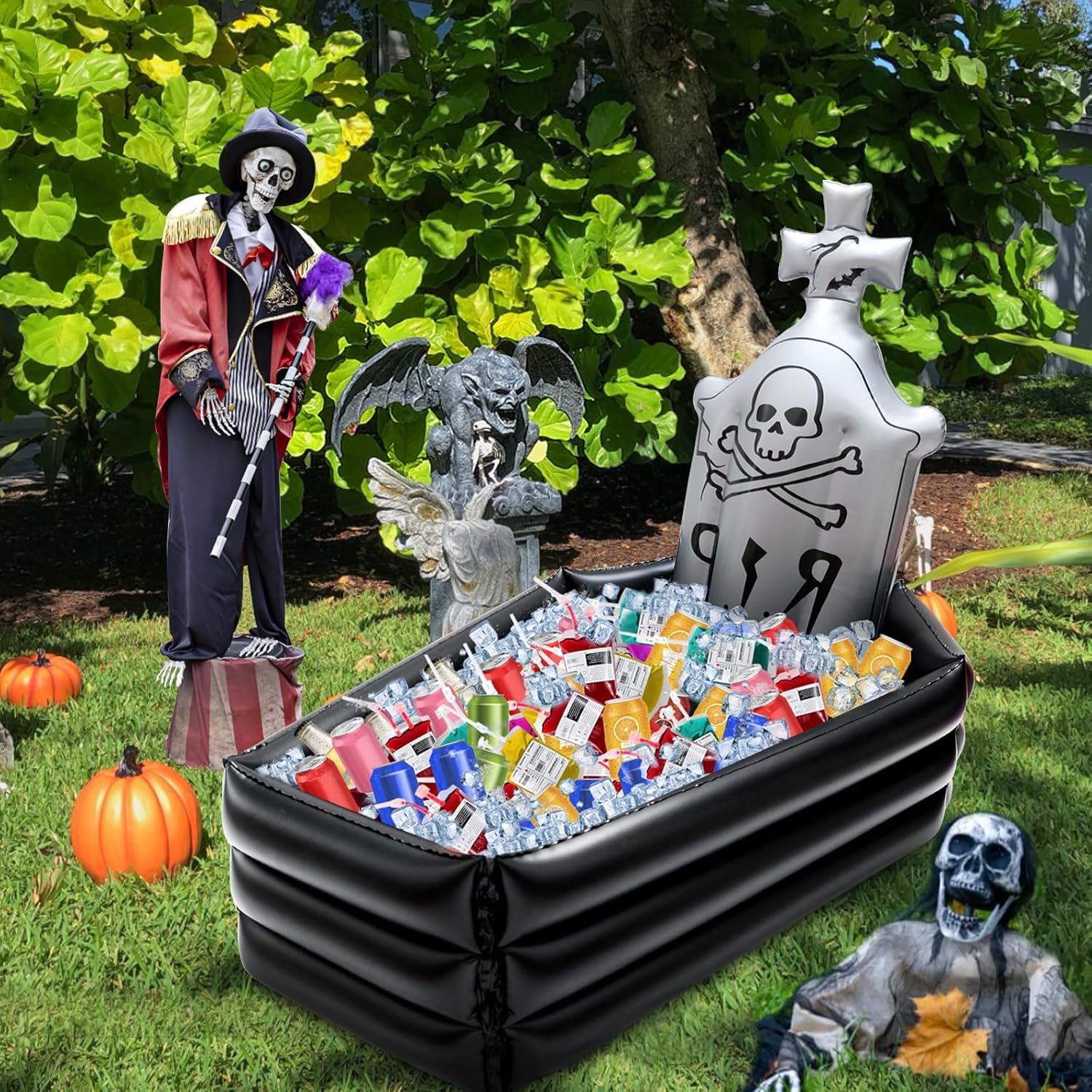 44 Inch Halloween Inflatable Tombstone Coffin Drink Cooler Party Supplies, Halloween Party Beverage Holder for Indoor Outdoor Home Halloween Party Decorations Inflatable Serving Bar Drink Container