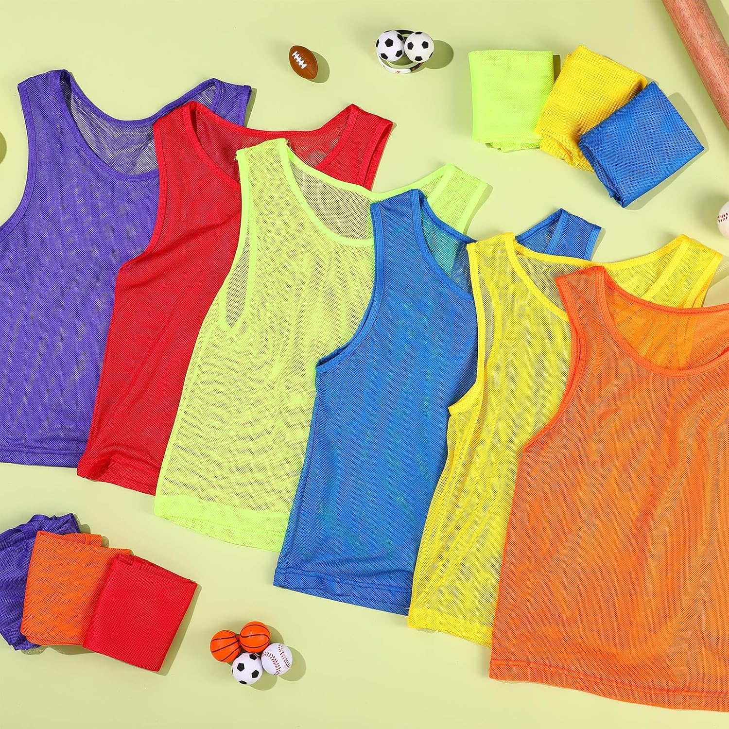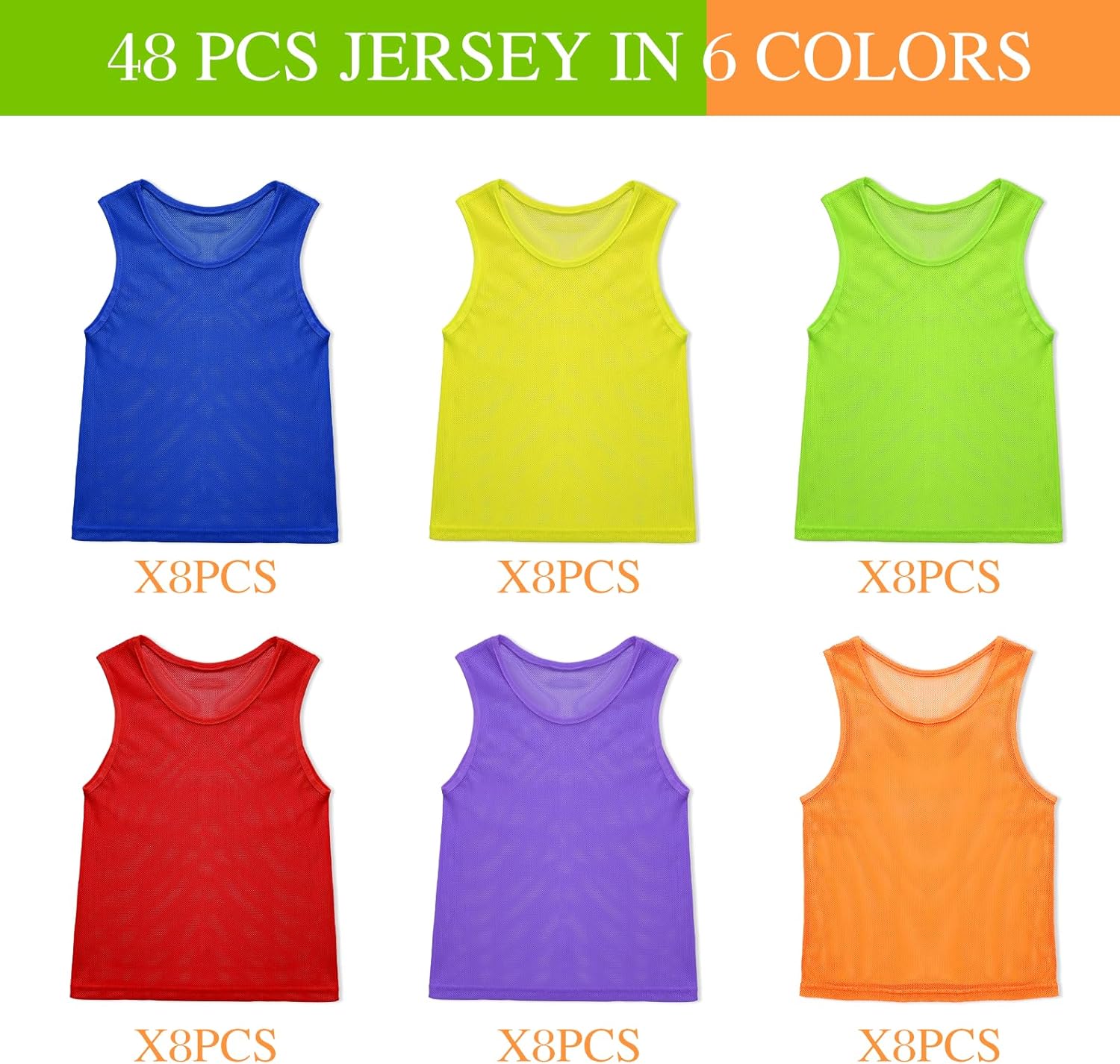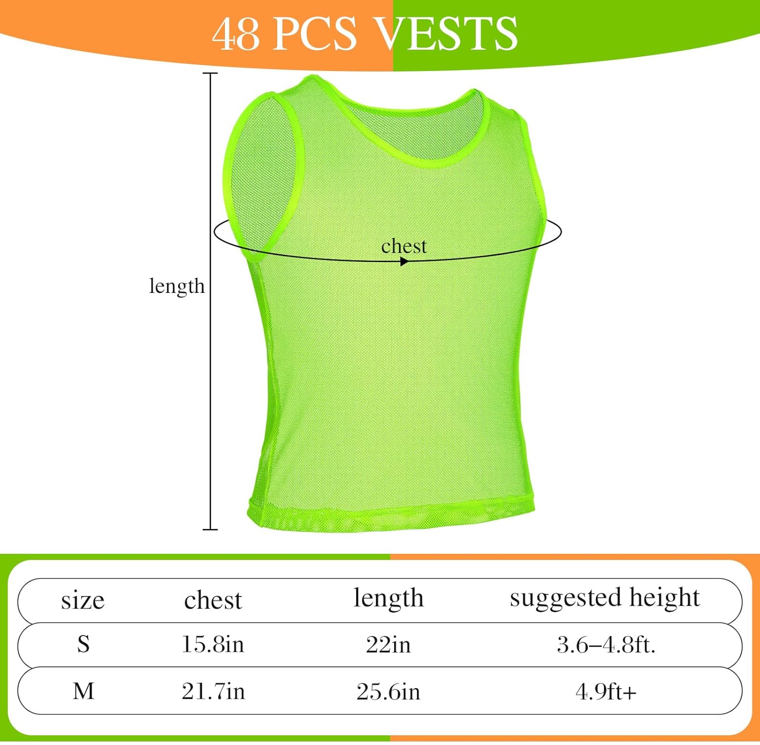 48 Pcs Pinnies Scrimmage Vests Sports Team Mesh Practice Jersey for Youth Kids Basketball Football Soccer