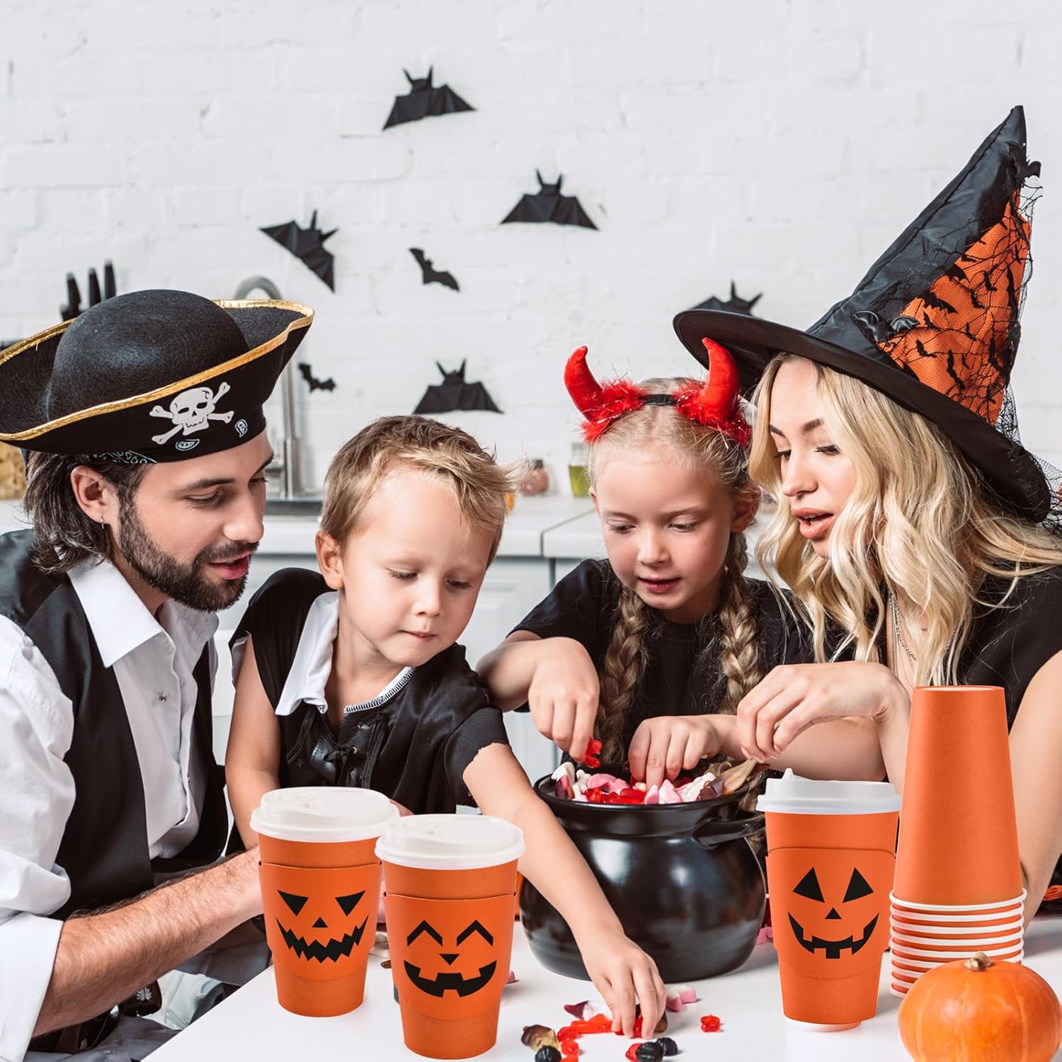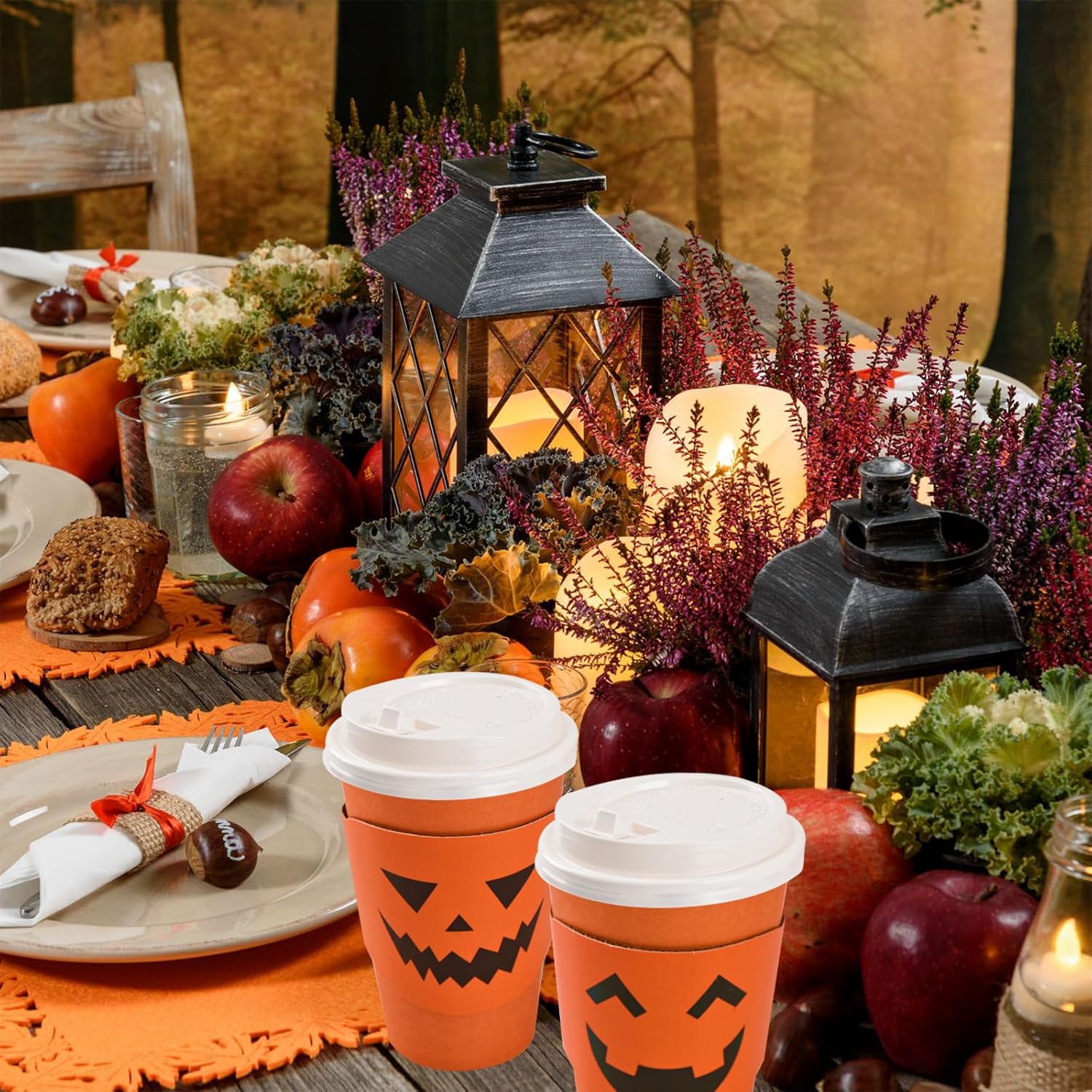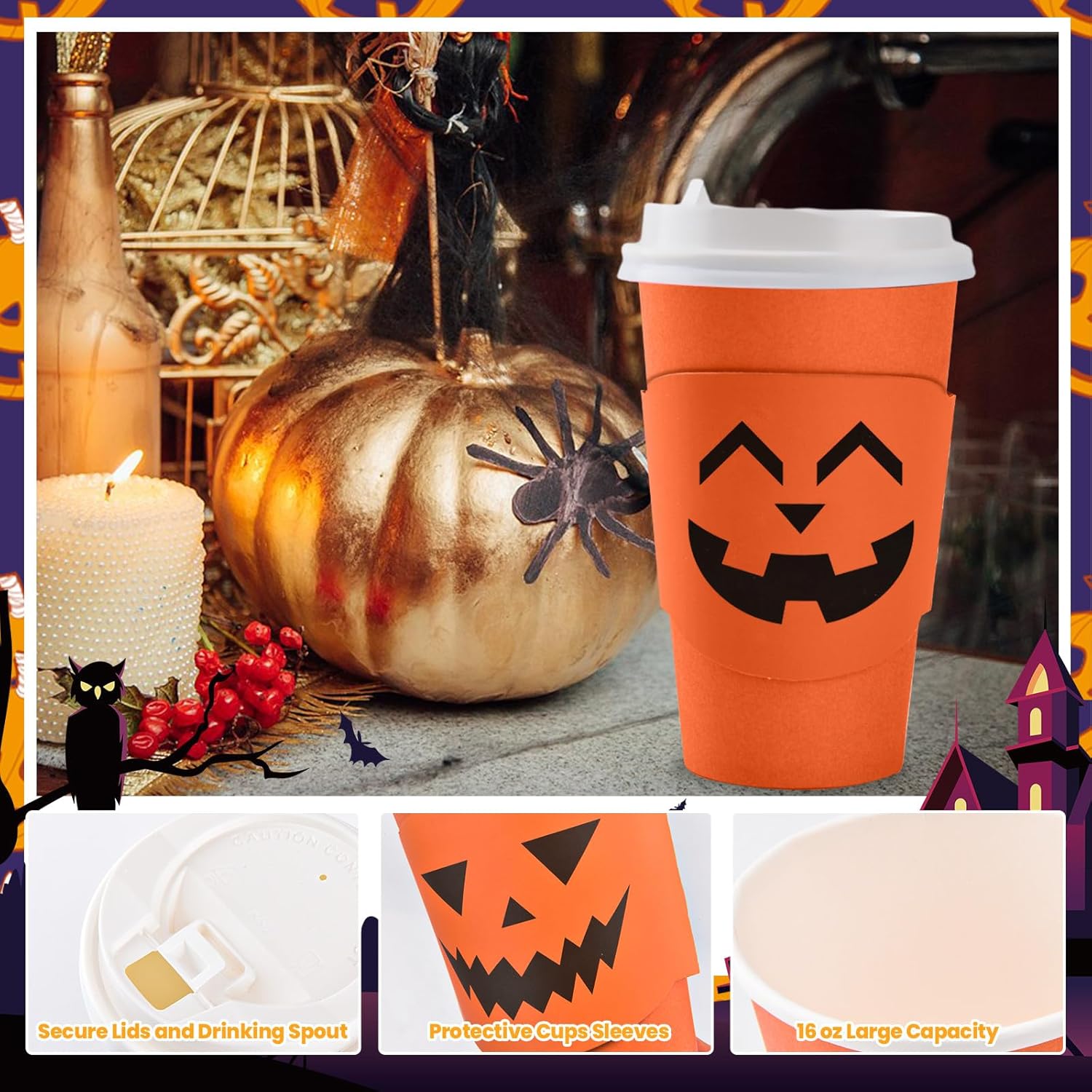 Package Includes: 48 pack of Halloween pumpkin face paper coffee cups, 48 plastic cup lids and 48 corrugated cup sleeves; abundant in quantity to meet your holiday home, office, restaurant, party needs and replacements