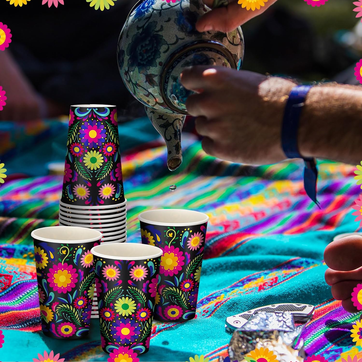 What You Get: a large pack of 50 vintage floral Day of the Dead themed paper cups, each holding 12 ounces These cups are printed with a visually striking and colorful Mexican floral pattern, making them suitable for a variety of occasions, from everyday use to grand party decorations, and can be easily separated by simply tapping and twisting them in opposite directions for easy use