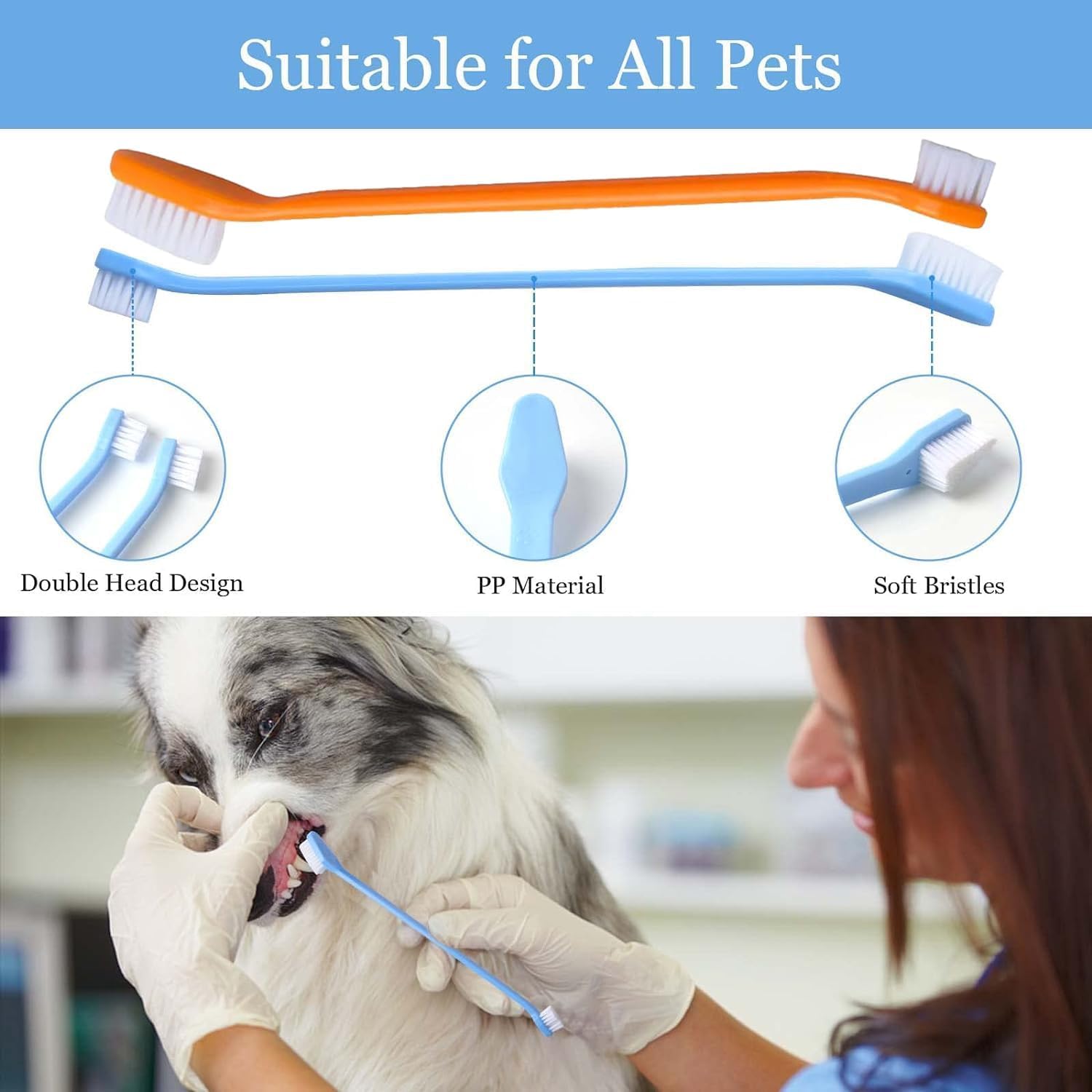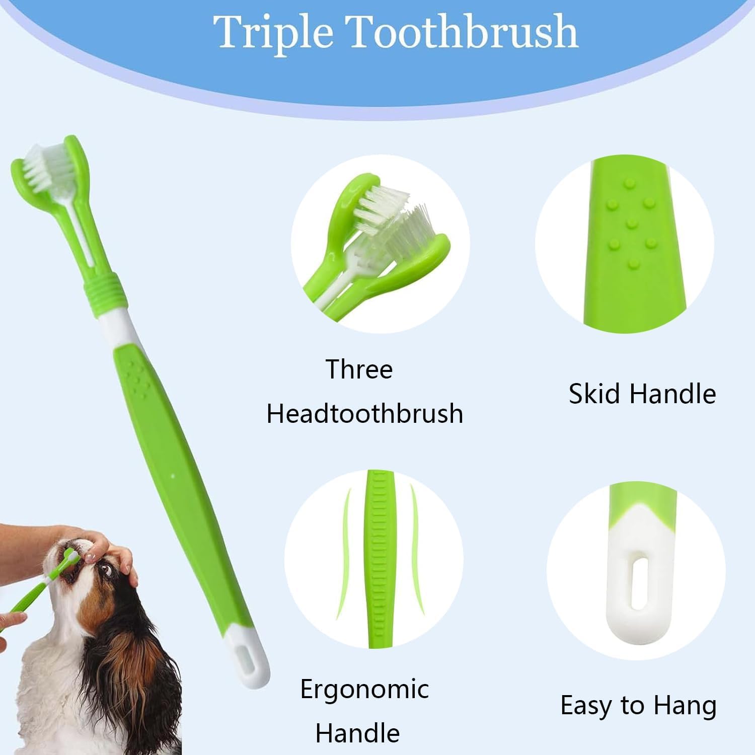 – Triple Head Pet Toothbrush: Designed for comprehensive cleaning, suitable for all pet sizes.