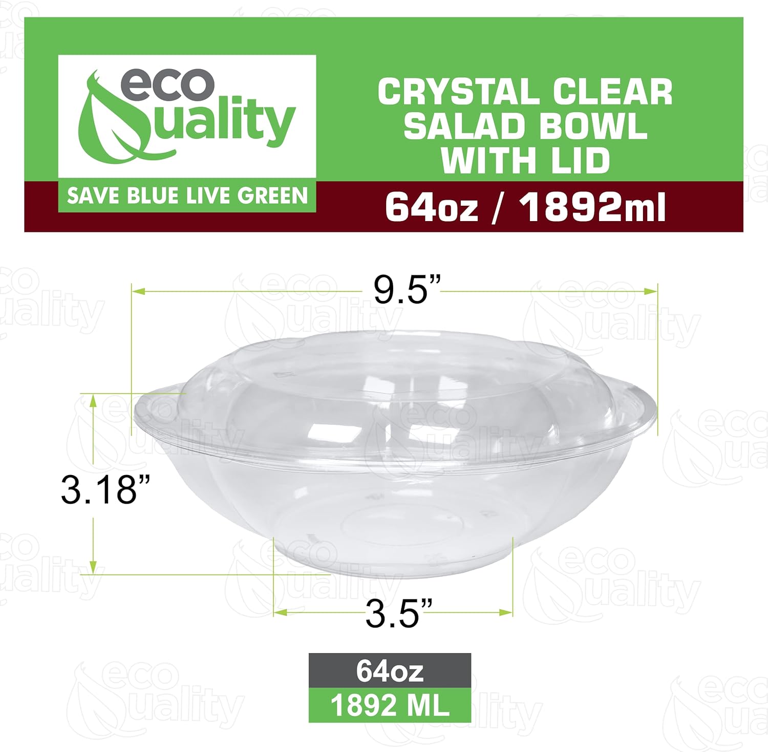 Amazing Presentation: 64 oz (ounce) Wide Crystal Clear container with matching lids. Top of the line presentation for prepared and on the go products. Eco Friendly!