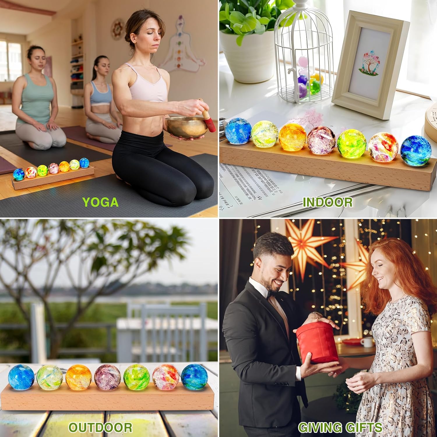 🌈【A Perfect Gift】Package includes: 7 colorful stones+LED wooden stand+ one USB cable +one beautiful gift box.to light the stand,USB only. You can directly give the healing balls set as a gift for your friends, lovers, teachers,families,mum on Christmas,Birthday,Wedding Anniversary,Teacher’s Day, Mother’s.