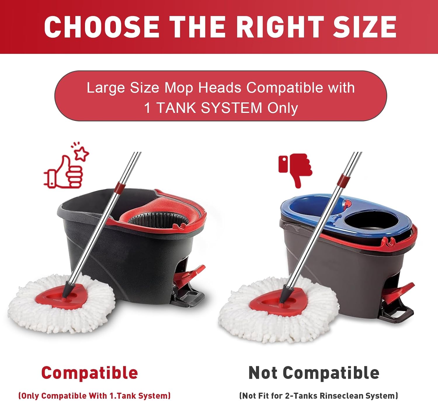 GRAREND Mop Replace Head Compatible with Ocedar Mop Heads Replacements fits my Mop. Itâs Refill Compatible with O-Ceda EasyWrin Spin Mop Head Replacement 1-Tank System Only. Itâs 6 Refills for decent price. Itâs long string and fluffy. It might not absorb water well at first, overall itâs good replacement. It fit and work at it should. Of course, canât compare to the original. After it gets so dirty I just toss it away. I havenât try the washing it in the machine, itâs not worth it.