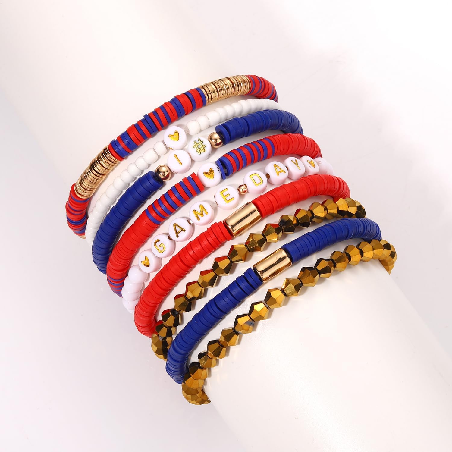 9 Pack Game Day Bracelets for Women Stackable Heishi Beaded Stretch Bracelet Football Sport Fan Bracelet Sports Game Team Jewelry Accessories Gifts