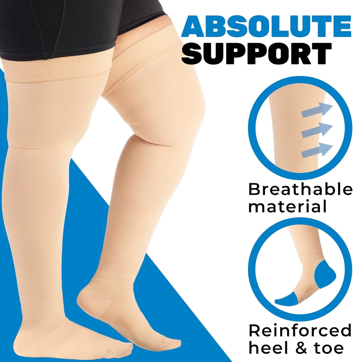 ABSOLUTE SUPPORT Wide Calf Compression Stockings 20-30mmHg – Plus Size Opaque Thigh High for Women & Men Circulation, Varicose Veins, Swelling, Lymphedema, Knee Surgery – Beige, 2X-Large