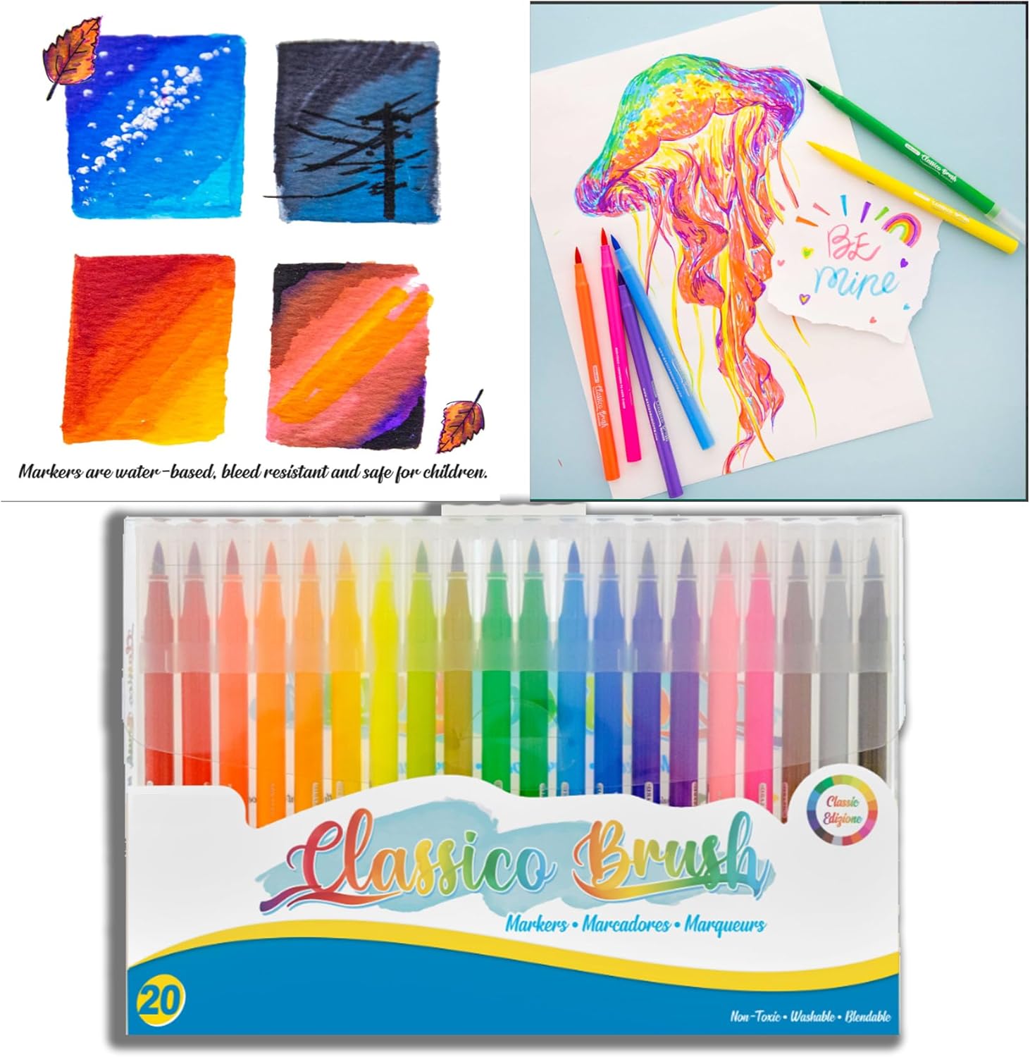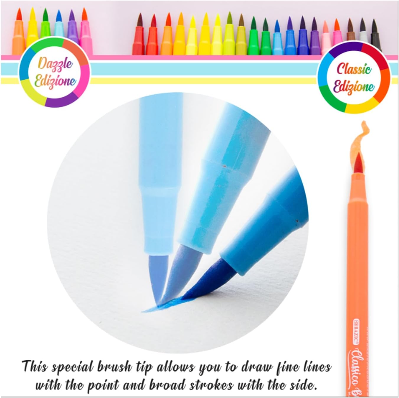 Hereâs the thing that really frustrates me: the brush markers arenât dual tips. They only have a brush tip, not a fineliner tip. So many of the coloring designs have very small areas to color, and it would be frustrating trying to color those with a thick tip marker.