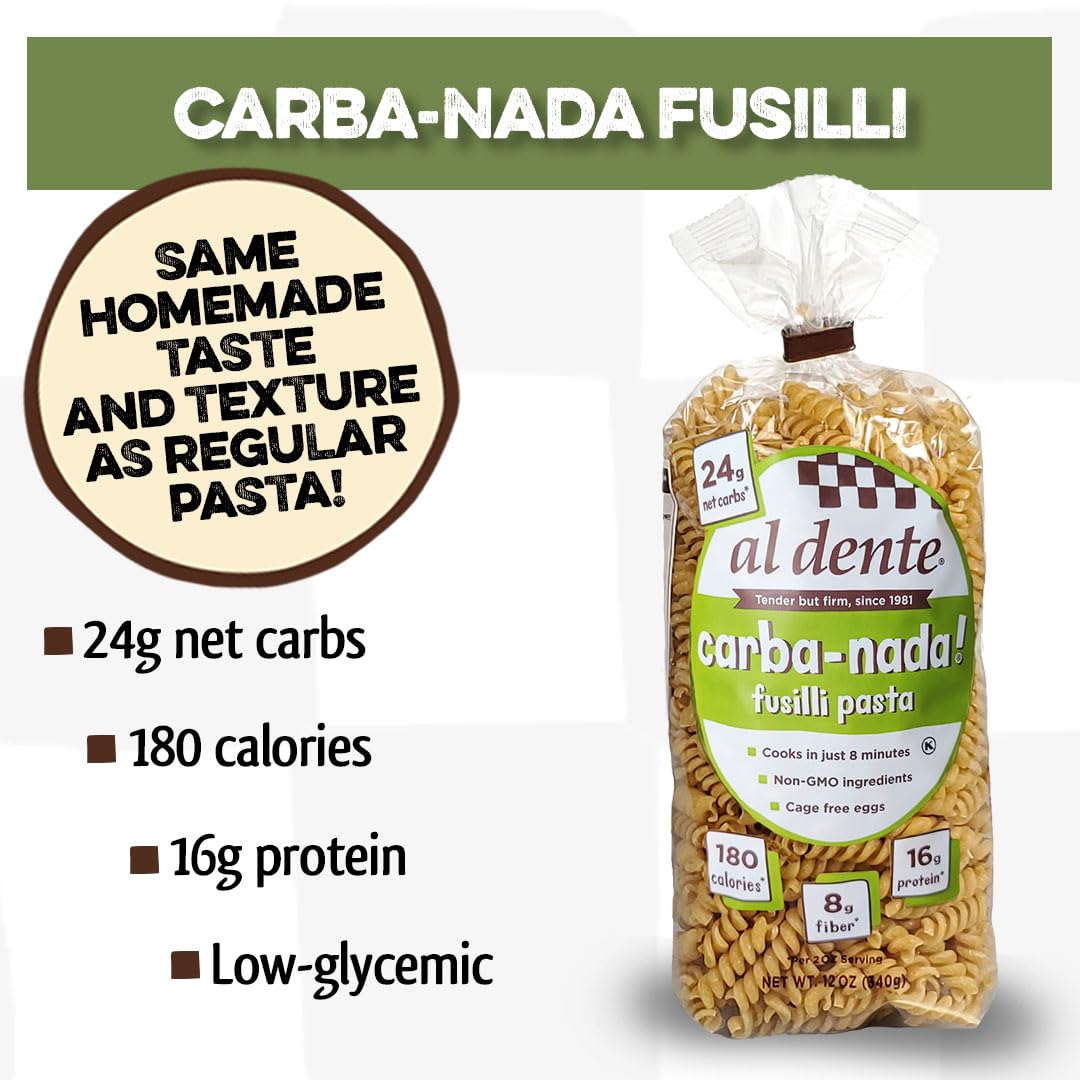 Al Dente Carba-Nada Fusilli, Reduced Carb, High Protein Pasta, 72 Ounce, Pack of 6