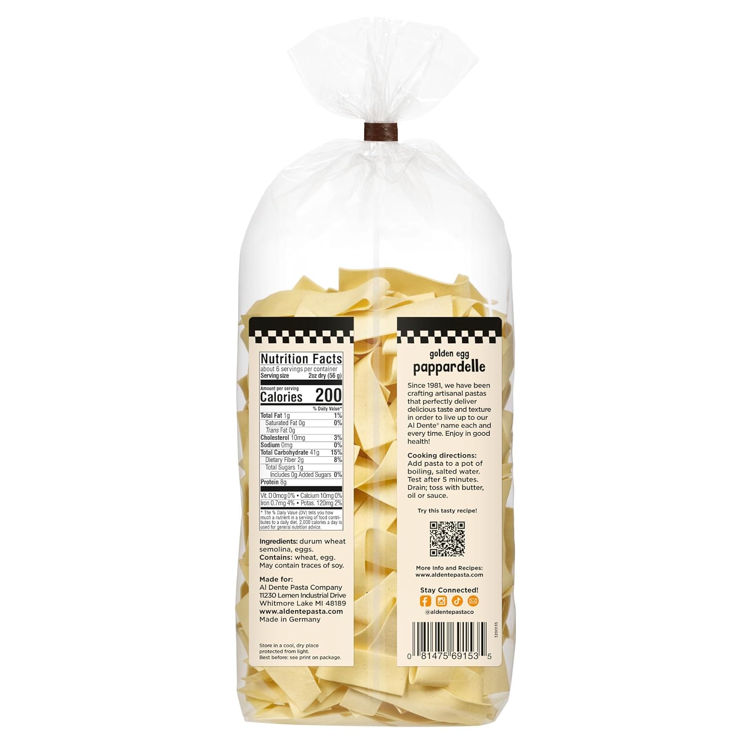 This company makes excellent pasta. Not cheap but well worth having such a great tasting pasta. Made with high quality ingredients and takes only 3-4 minutes for the pappardelle to be ready. I stopped buying any other brands.