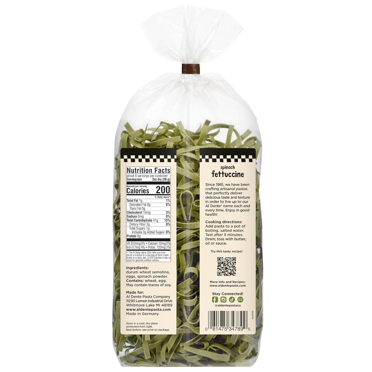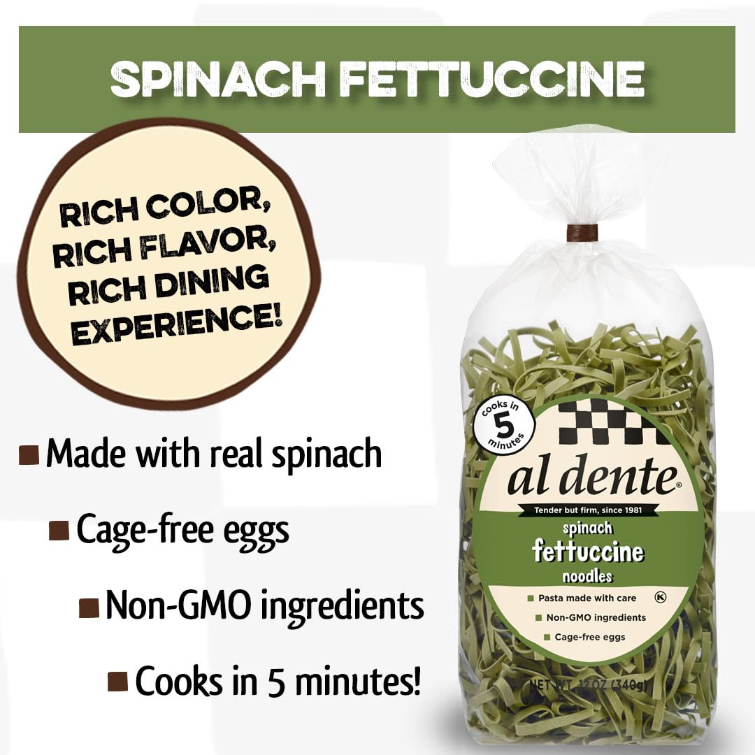 Al Dente Spinach Fettuccine Pasta, 12 Ounce — 6 per case. Sure hope you enjoy eating this pasta as much as we enjoy making it for you.