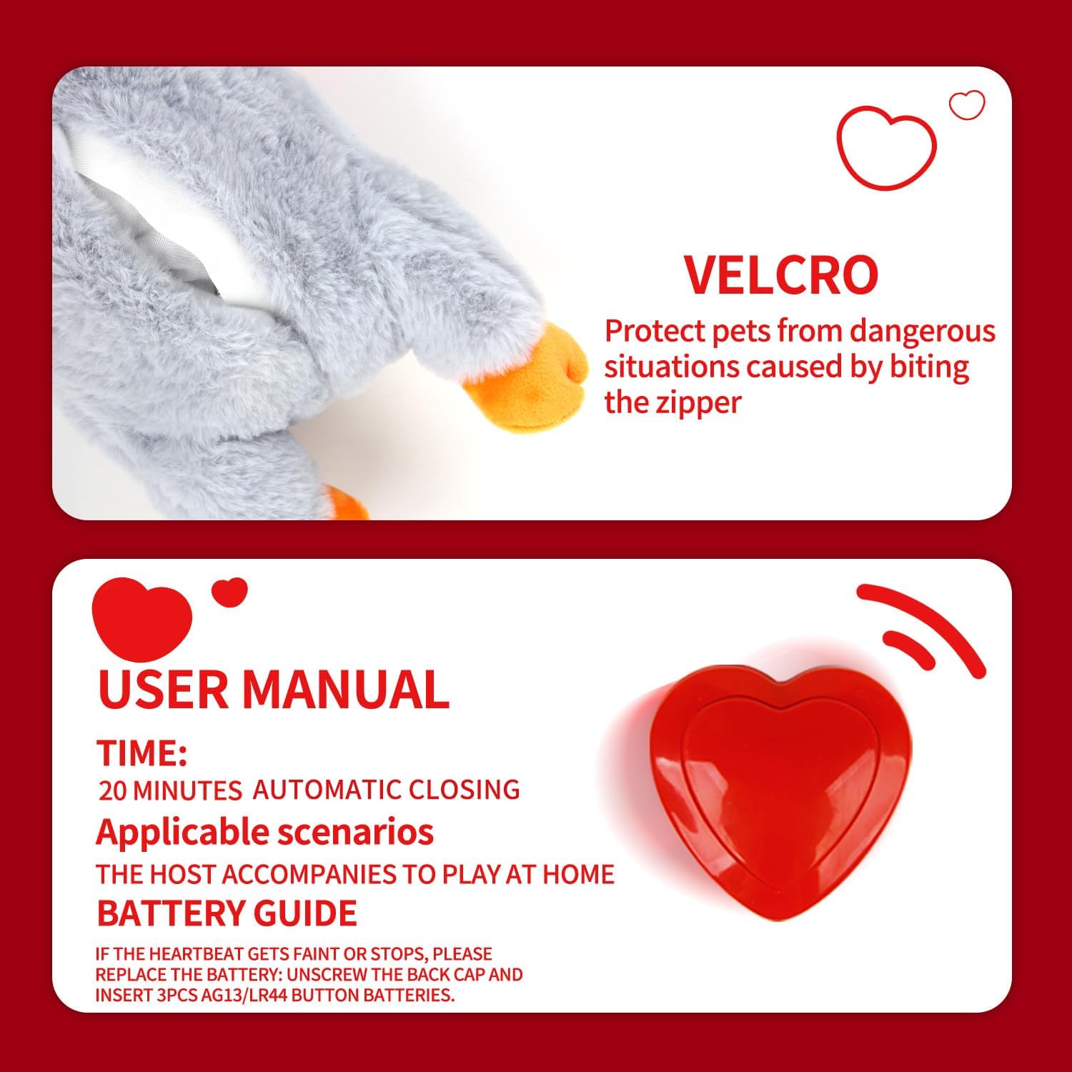 Anxiety and Comfort Aid: This heartbeat plush toy mimics a mother dog’s heartbeat’s soothing sound, helping ease anxiety and stress in your pet. It’s perfect for calming your dog in new environments, during separation, or in stressful situations like thunderstorms