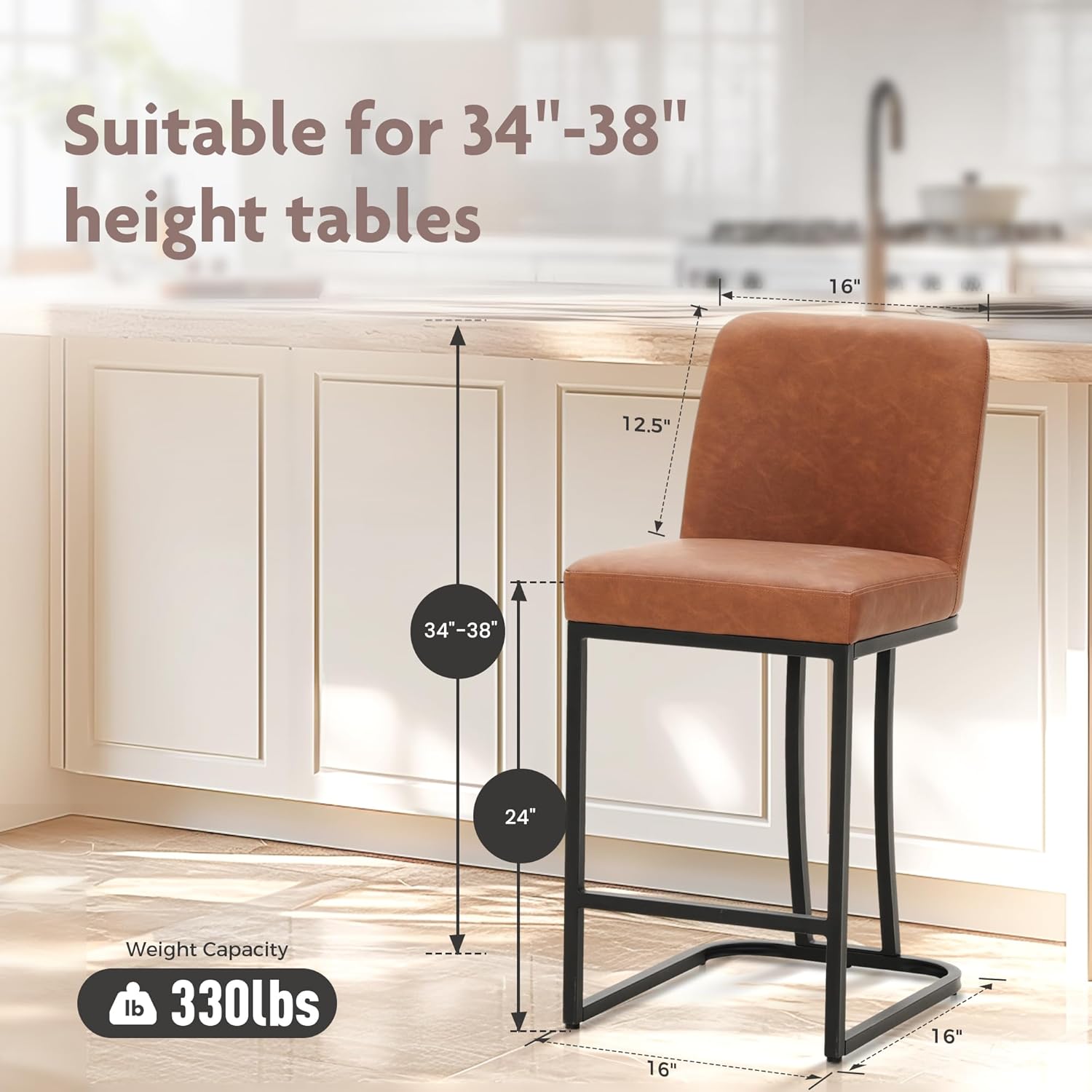 8 reviews for ALPHA HOME 24” Bar Stool Retro Design of Bar Stool Matte Leather Bar Chair Brown Metal Frame with Backrest Coffee Shop Kitchen Dining Room Cushion Bar Chair,Brown,2PC.