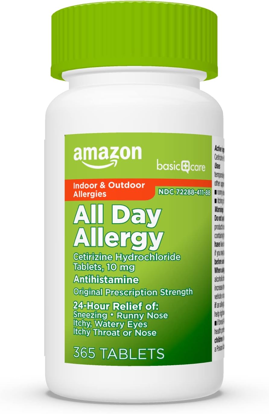 Amazon Basic Care All Day Allergy, Cetirizine Hydrochloride Tablets, Antihistamine, 10 mg, 365 Count (Packaging may vary)
