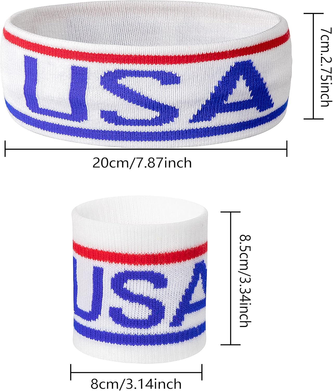 Love American:Our headbands and wristbands have chosen a combination of red, white and blue with American flag and USA letters elements in their designs, and are equipped with star and stripe patterns.American Flag Sports headband & wristband is the ideal patriotic apparel accessories