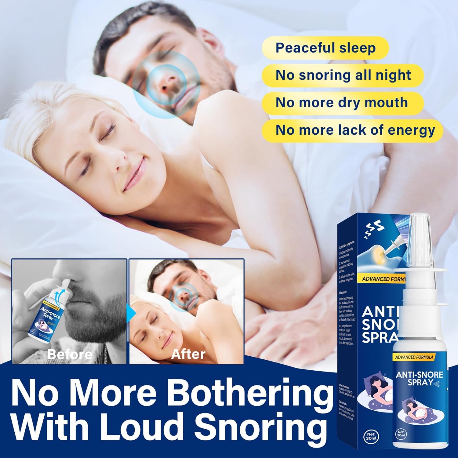Anti SNORING Spray-Solve Your Sleep Problems!Features:1.Simple to use, Safe and non-irritating, available to both men and women.2.30 ml capacity to meet daily needs.3.100% organic ingredients, safe and secure to use.How to Use:Step 1:Before going to bed, gently shake the bottle and open the lid.Step 2:Bend your head back slightly and aim the anti-snoring spray at your nostrils.Step 3:Spray 4-6 times and close the product lid.Warm Tips:1.Please use according to the product instructions.2.Keep out of reach of children.3.If discomfort occurs during use, stop using.