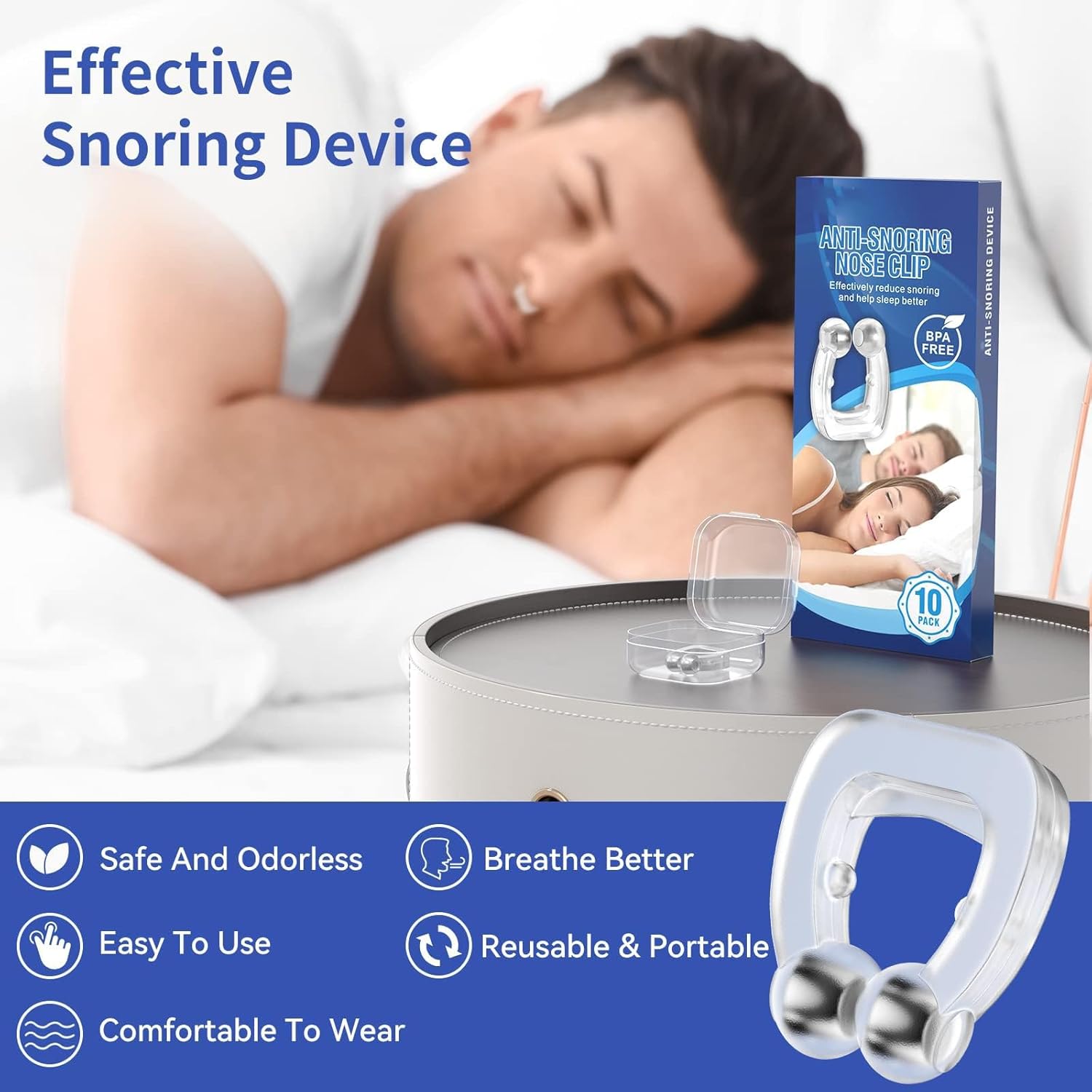 Anti Snoring Devices, Anti Snore Nose Clip – Silicone Magnetic Stop Snoring Aid for Men & Women – Effective Sleep Snoring Solution to Snooze Sleep- 10 Pack