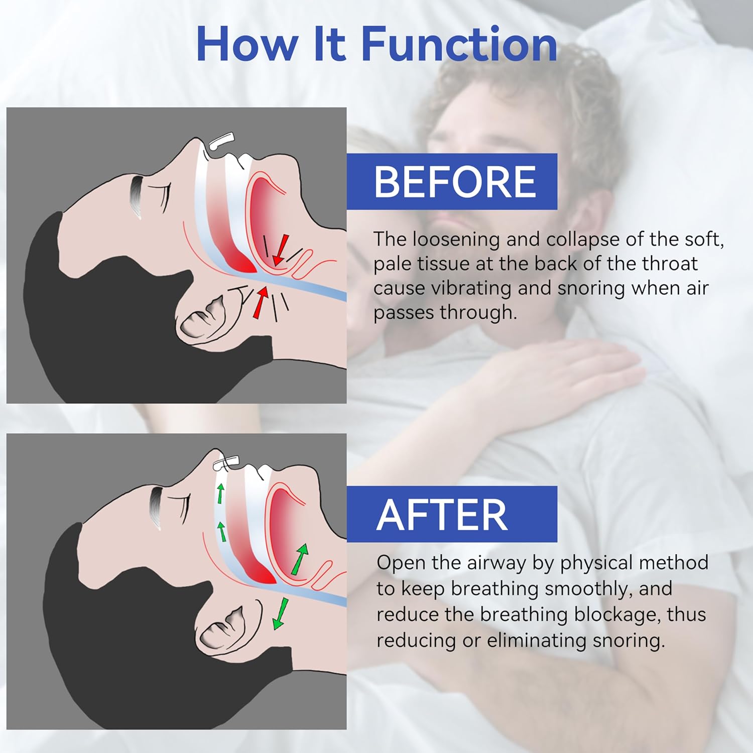 Snoring Devices: Our magnetic stop snoring device targets nasal breathing snoring by naturally positioning the tongue and opening nasal passages. This maximizes airflow, effectively alleviating snoring. While it may take a few nights to adjust, the benefits of peaceful sleep are worth it.