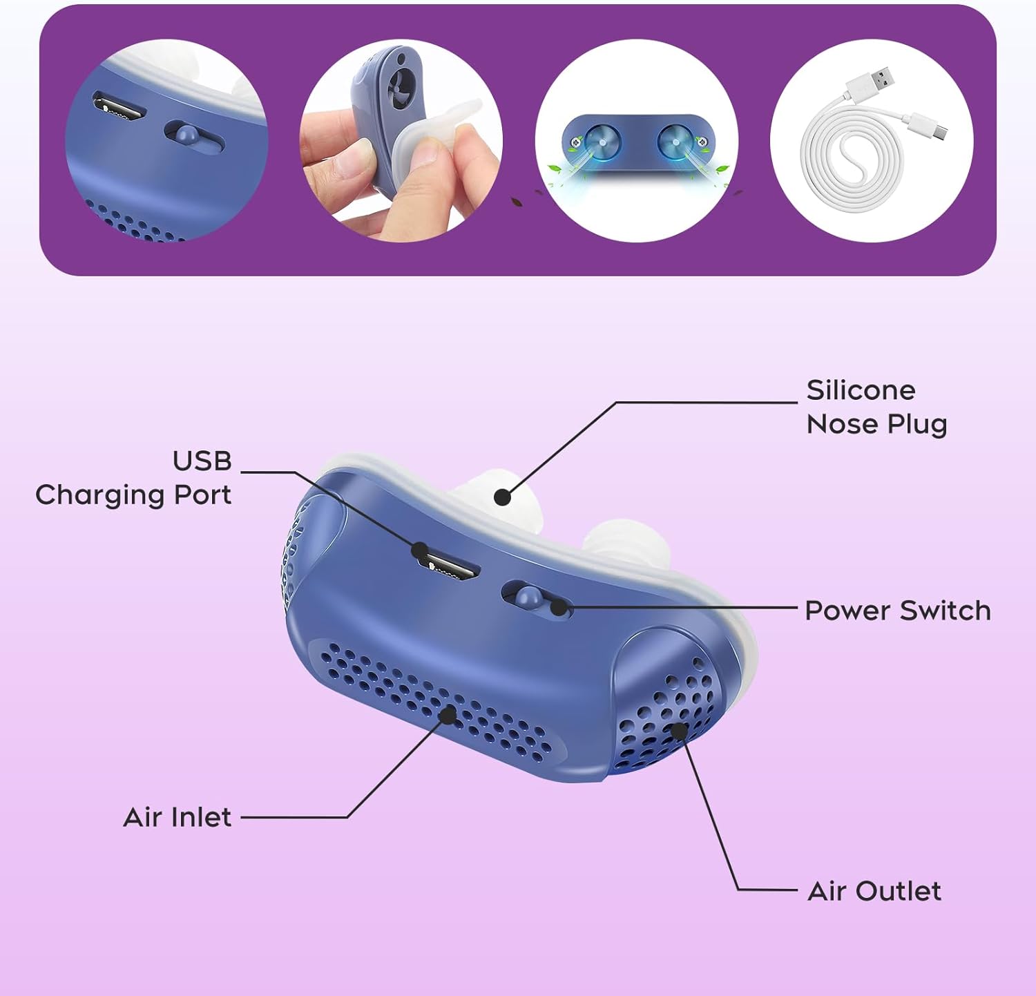 Efficient Turbine – Boasting a high-performance turbine fan mechanism, this innovative anti-snoring devices effectively boosts air circulation within your nasal cavities, allowing for free-flowing breaths even during profound sleep stages