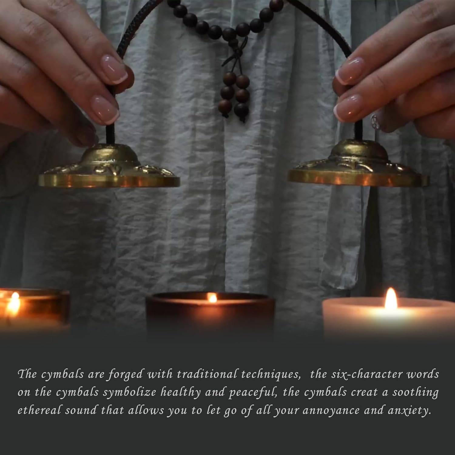 TRADITIONAL HANDICRAFT :The singing bowl is crafted from high-quality copper, tin, zinc, iron, silver, gold and nickel, and features intricate craftsmanship. The cymbals are forged with traditional techniques, are made of a special bronze alloy, which includes a mix of 7 metals to produce harmonious tones. Agarwood beads bracele is made of natural agarwood, emitting a unique agarwood fragrance, It has a calming effect.