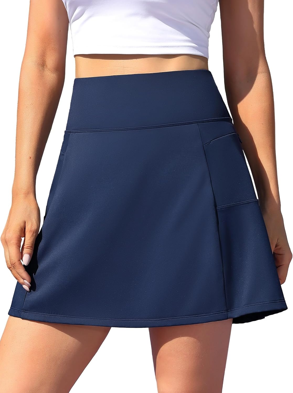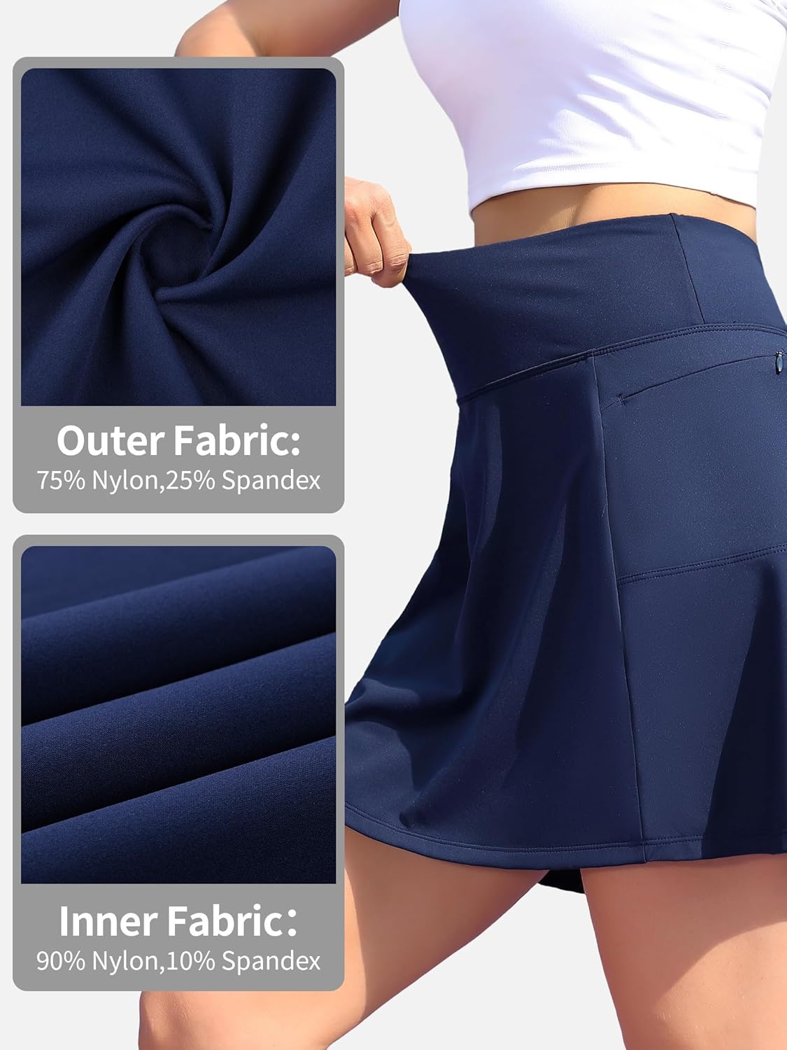 For years, I’ve been searching for the perfect golf skort, and I think I’ve finally found it! This 17-inch, high-waisted skort in classic black is a game-changer on and off the course. Let’s break down why I’m so impressed:Comfort and Performance: The Fabric: The blend of 75% Nylon and 25% Spandex is a winner. It’s incredibly comfortable, offering just the right amount of stretch for a full range of motion during my swing. It also feels lightweight and breathable, which is crucial during those hot summer rounds. The Fit: The high-waisted design with a wide waistband is incredibly flattering and provides excellent core support. It stays put without feeling restrictive, and the 17-inch length is perfect â long enough for modesty but short enough to be stylish and allow for easy movement. The Shorts: The built-in mesh shorts are a fantastic addition. They’re lightweight, breathable, and provide excellent coverage, preventing any unwanted chafing. They also add an extra layer of confidence when bending over to pick up a ball.Practicality and Style: Zippered Pockets: This is where this skort truly shines. The zippered pockets are deep enough to hold tees, a scorecard, a phone, and even a small wallet. The zippers ensure everything stays secure, which is a huge plus. Versatility: While designed for golf, this skort is so comfortable and stylish that I’ve found myself wearing it for other activities like tennis, hiking, and even running errands. The black color goes with everything, making it a versatile piece in my wardrobe. Overall Look: This skort is sleek and modern. The high waist, the subtle A-line shape, and the clean lines give it a polished look that transitions seamlessly from the course to casual outings.Minor Considerations: Sizing: I found the sizing to be true to size, but I’d recommend checking the size chart carefully before ordering, especially if you’re between sizes.Final Verdict:This golf skort is a must-have for any female golfer or active woman. It combines comfort, performance, and style in a way that’s hard to find. The thoughtful design details, like the zippered pockets and mesh shorts, elevate it from a basic skort to a true wardrobe staple. I highly recommend it and will definitely be purchasing it in other colors!