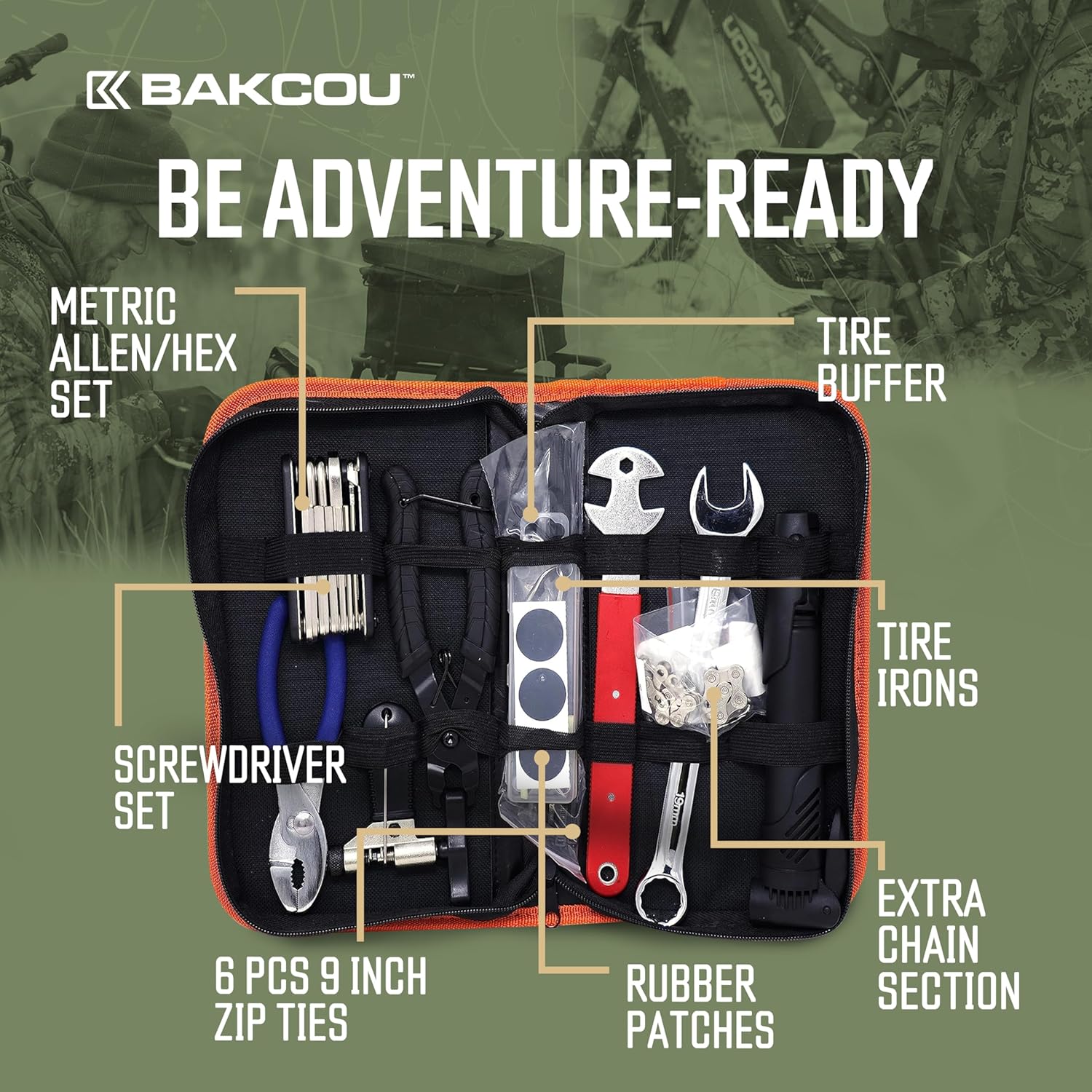 Bakcou | Trailside Repair Kit – Portable eBike and Bicycle Trailside Repair Set – Chain Pliers, Multi-Tool, Pedal Wrench, Mini Pump, Tire Patches, & More – Emergency Maintenance Kit with Chain Breaker