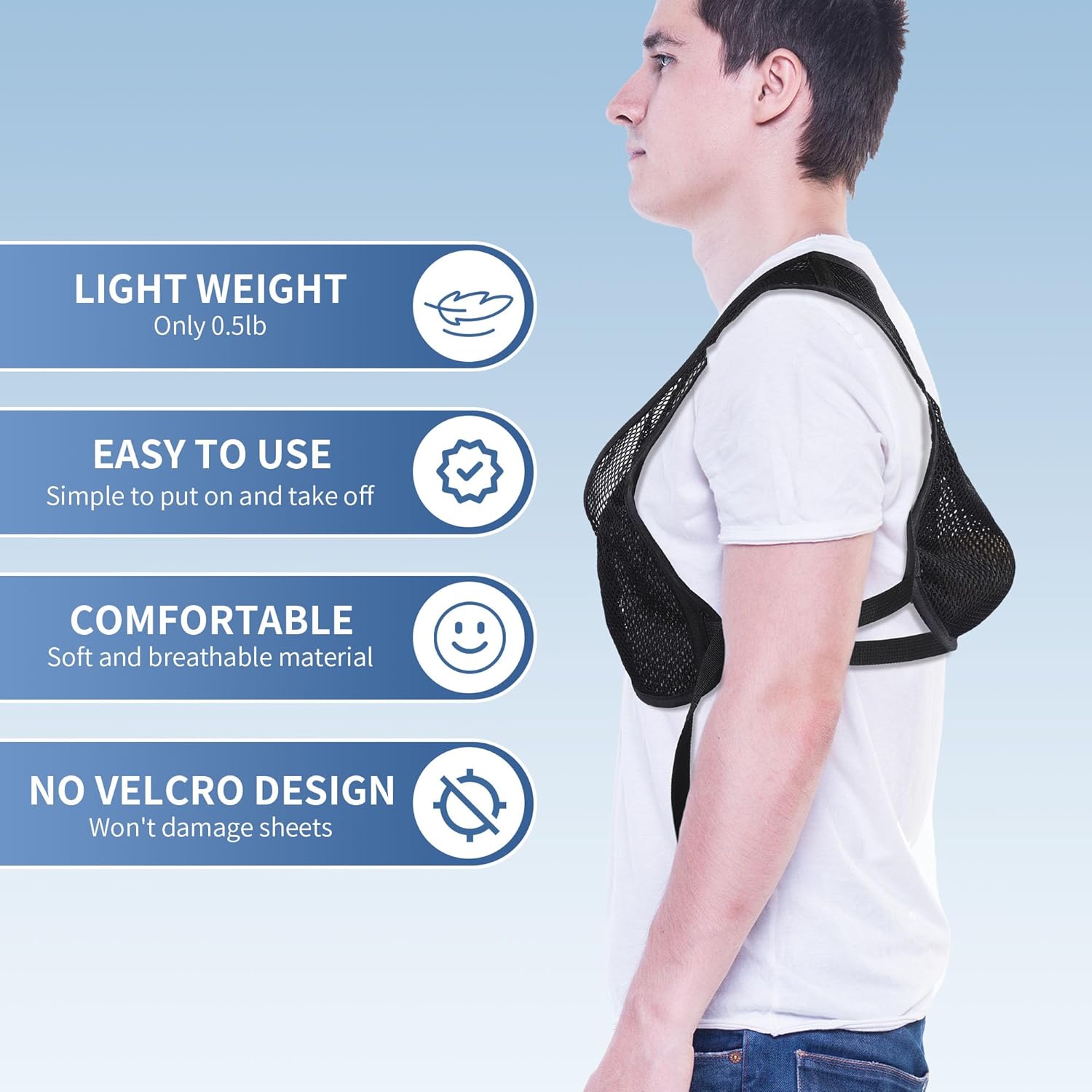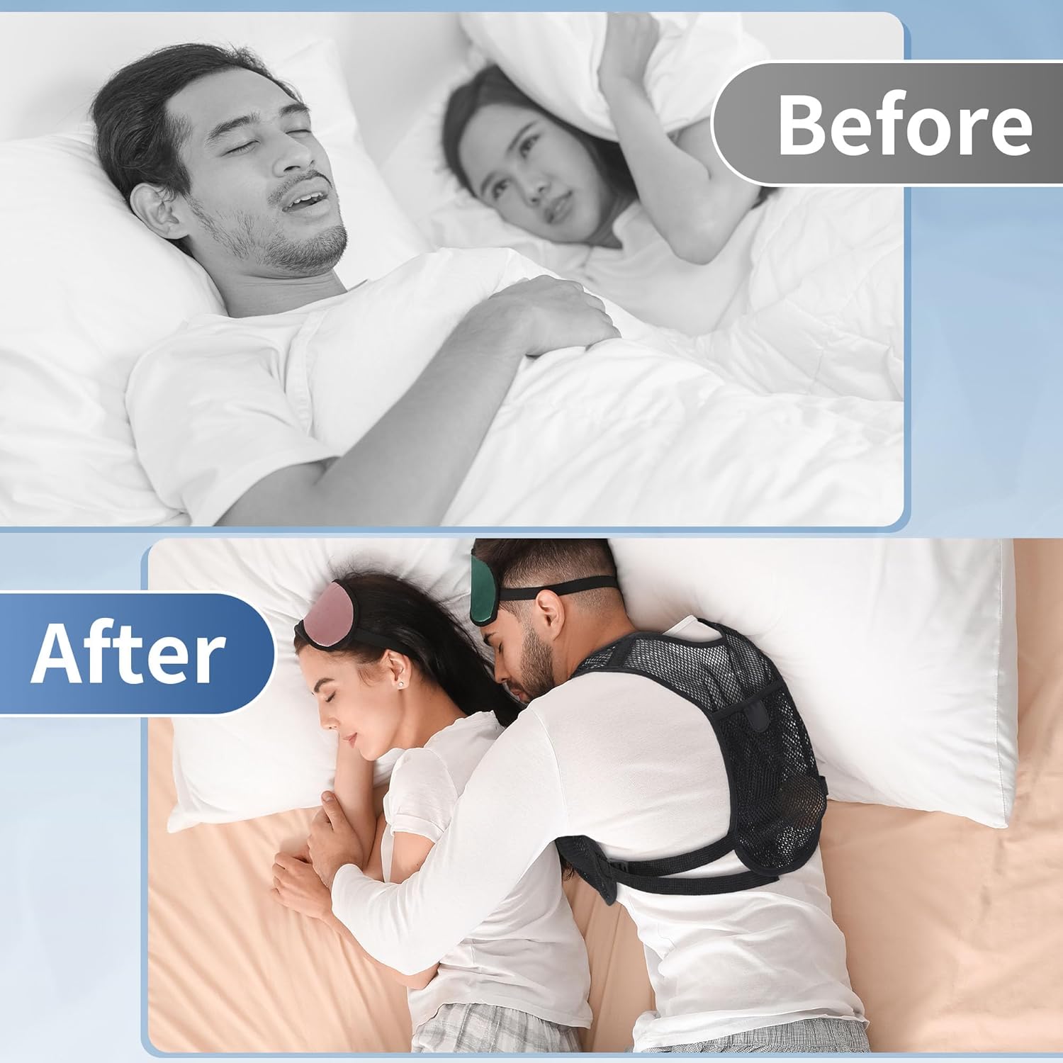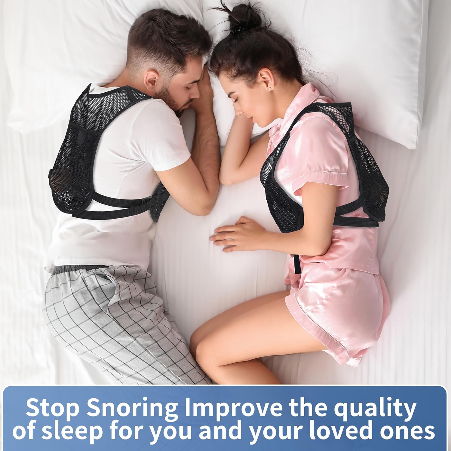 【Easy to Use】Easy to put on and take off without damaging sheets or pajamas. Simply slip it on your back and start a snore-free night.